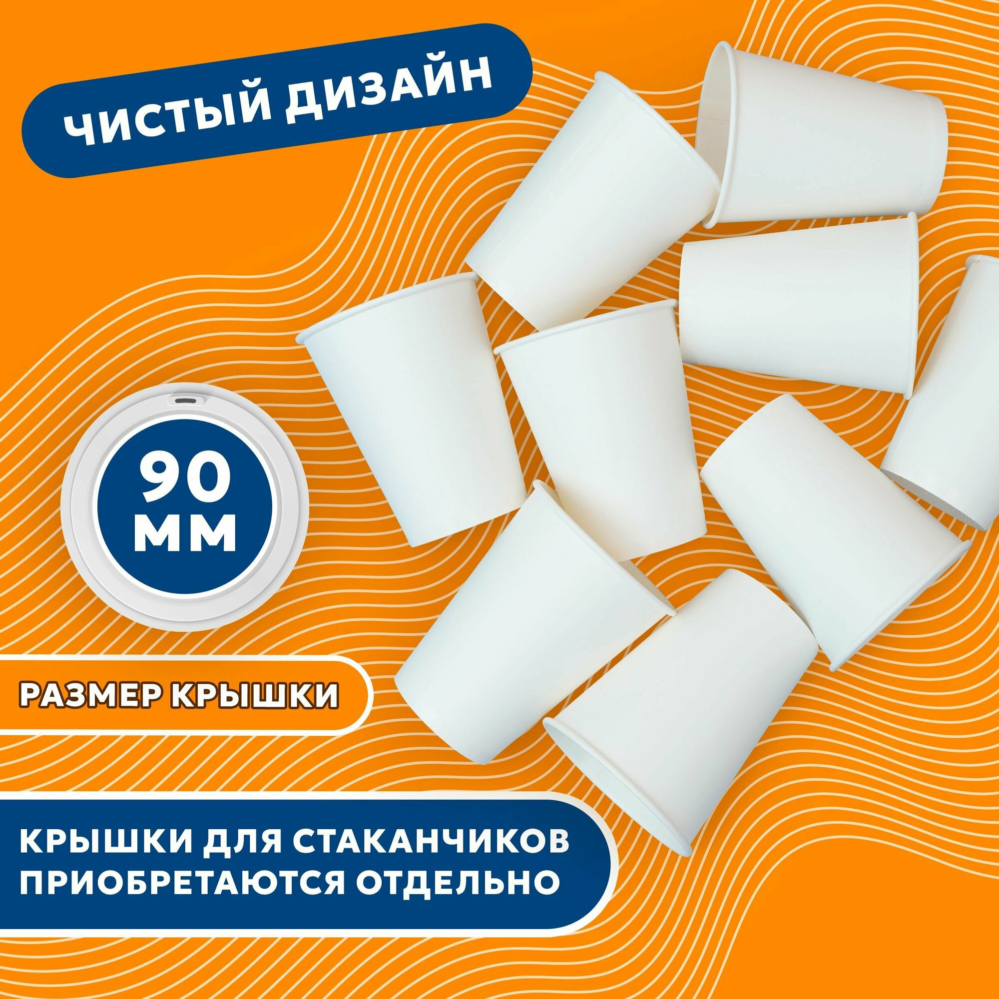 Набор одноразовых стаканов гриникс, объем 250 мл 50 шт. белые, бумажные, однослойные, для кофе, чая, холодных и горячих напитков
