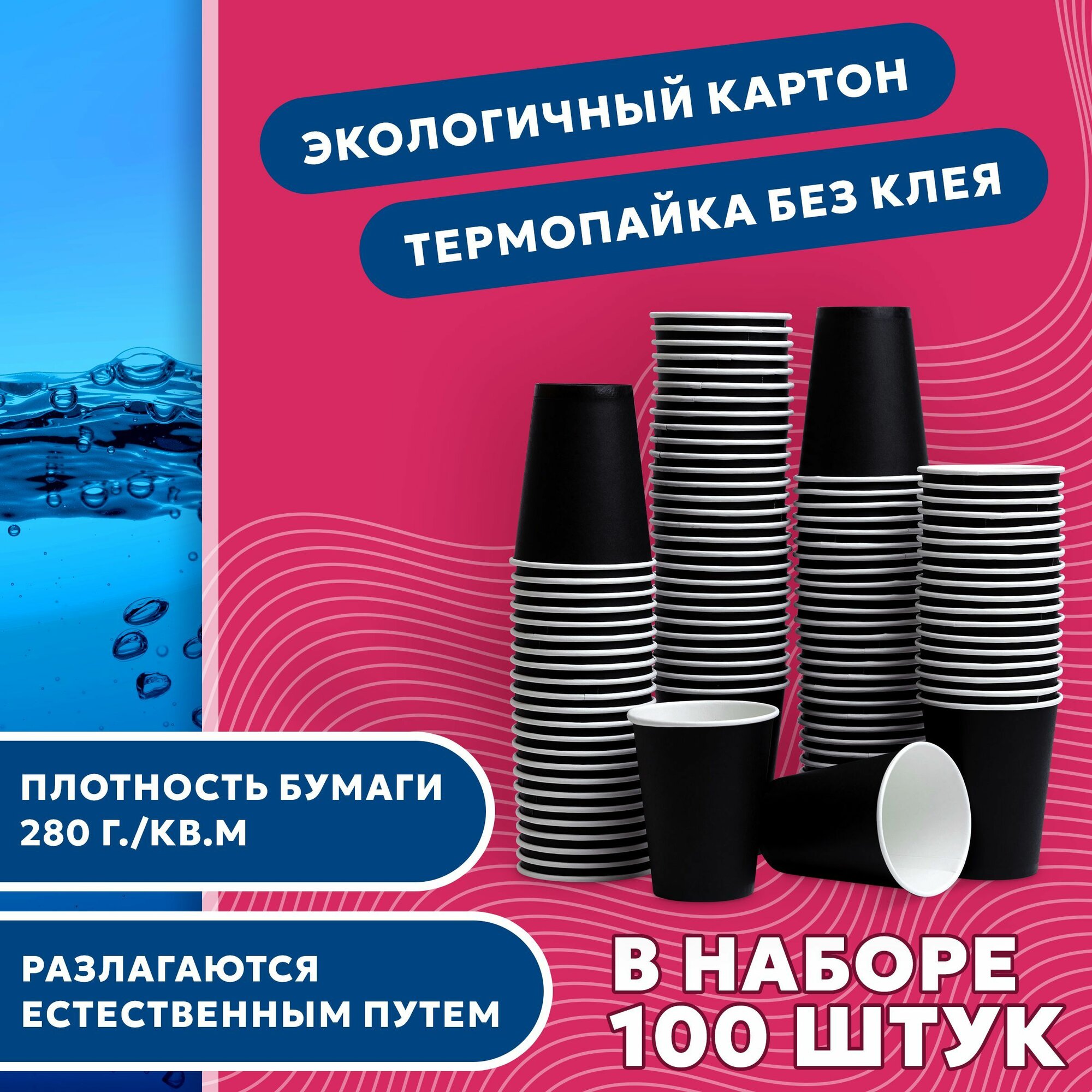 СохранитьНабор одноразовых стаканов гриникс, объем 350 мл 100 шт. черные, бумажные, однослойные, для кофе, чая, холодных и горячих напитков интересное: