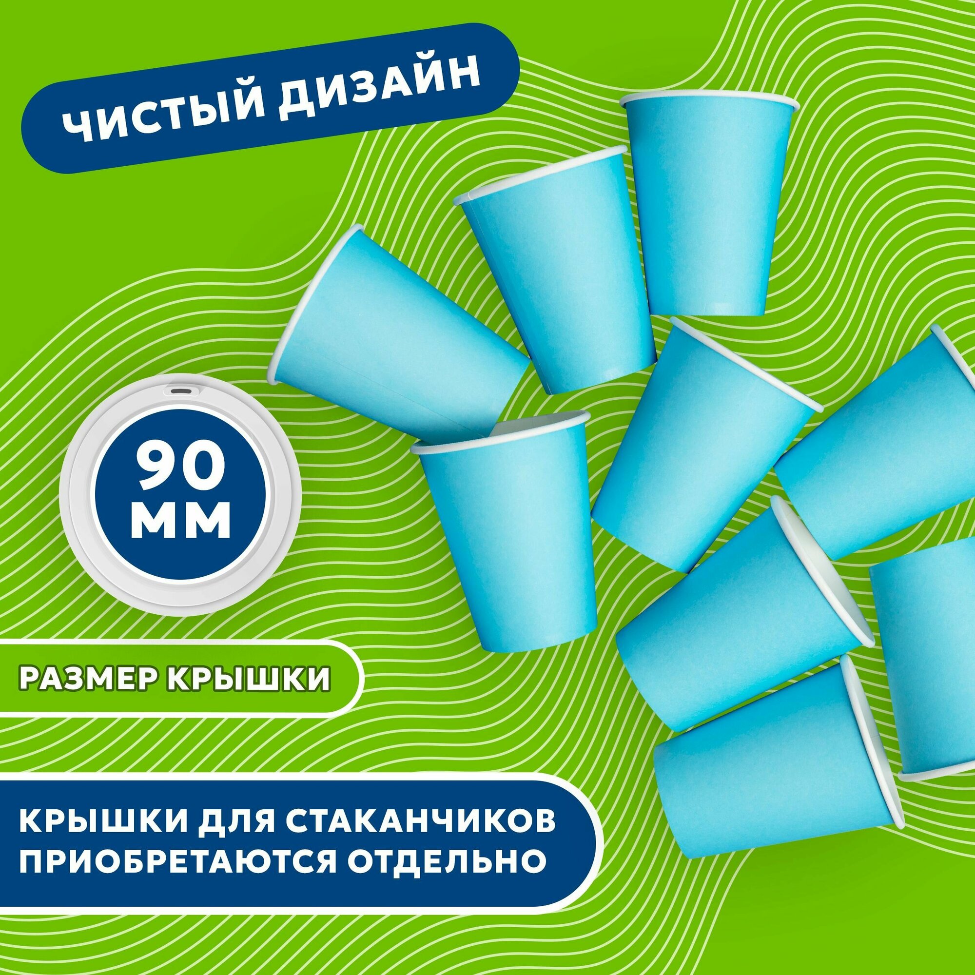 Набор одноразовых стаканов гриникс, объем 250 мл 100 шт. синие, бумажные, однослойные, для кофе, чая, холодных и горячих напитков