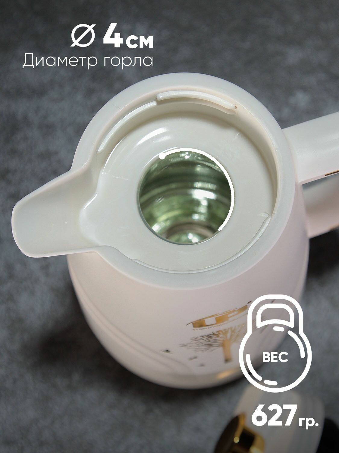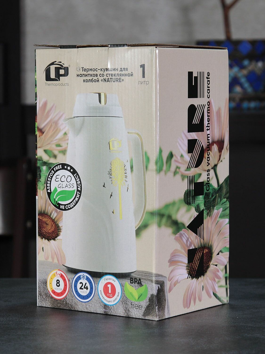 Термос со стеклянной колбой 1л (термокувшин)женский LP Nature белый интересное: