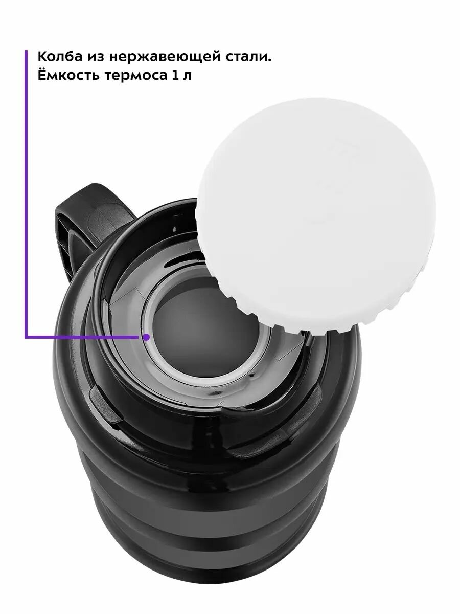 Термос Kitfort KT-1234 объем 1л, сохраняет тепло и холод до 24ч, из нержавеющей стали, черный интересное: