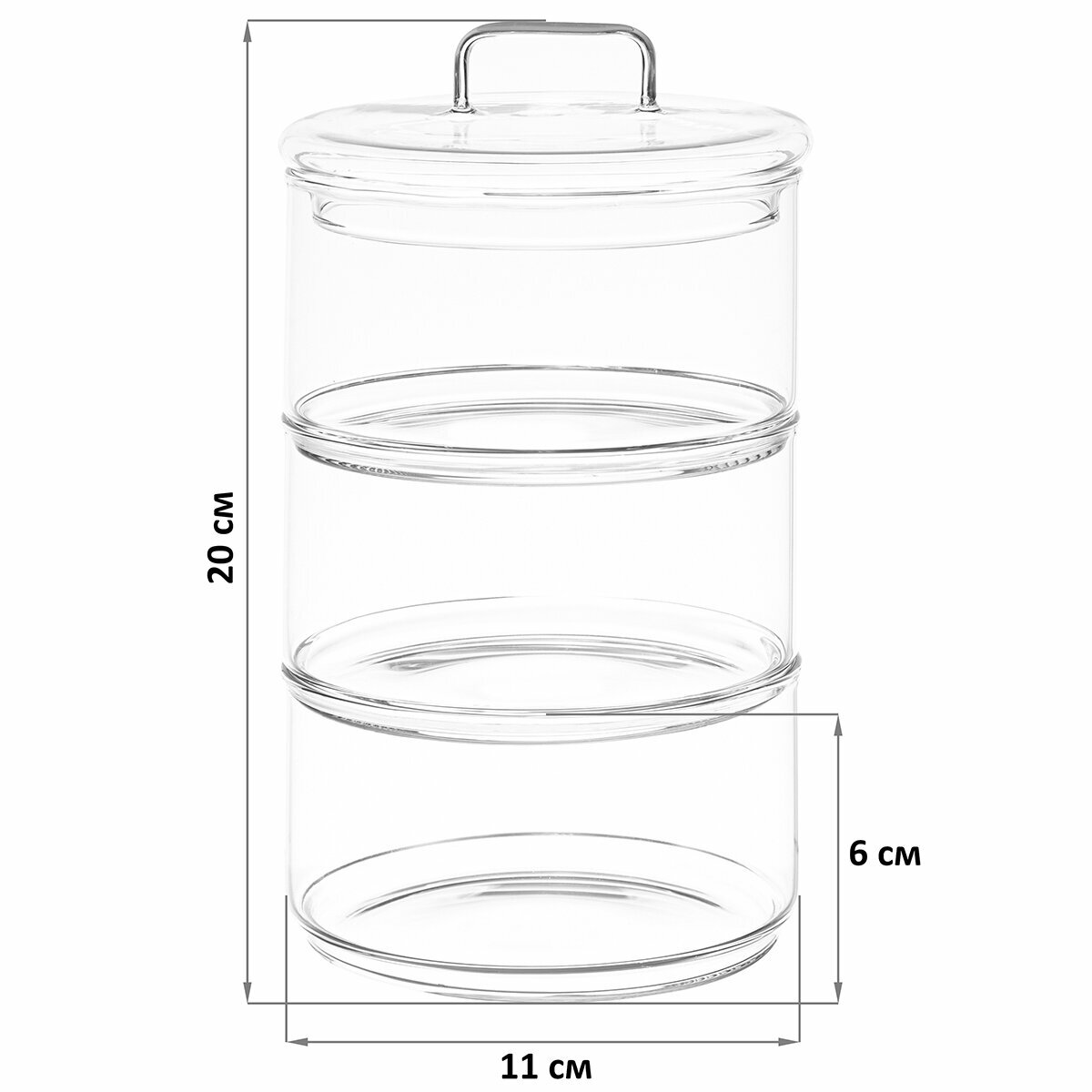 | Комплектация | Банка для хранения 3-х секционная "Crystal glass" 11,5х11,5х20 см, 11х11х6 см 400 мл |