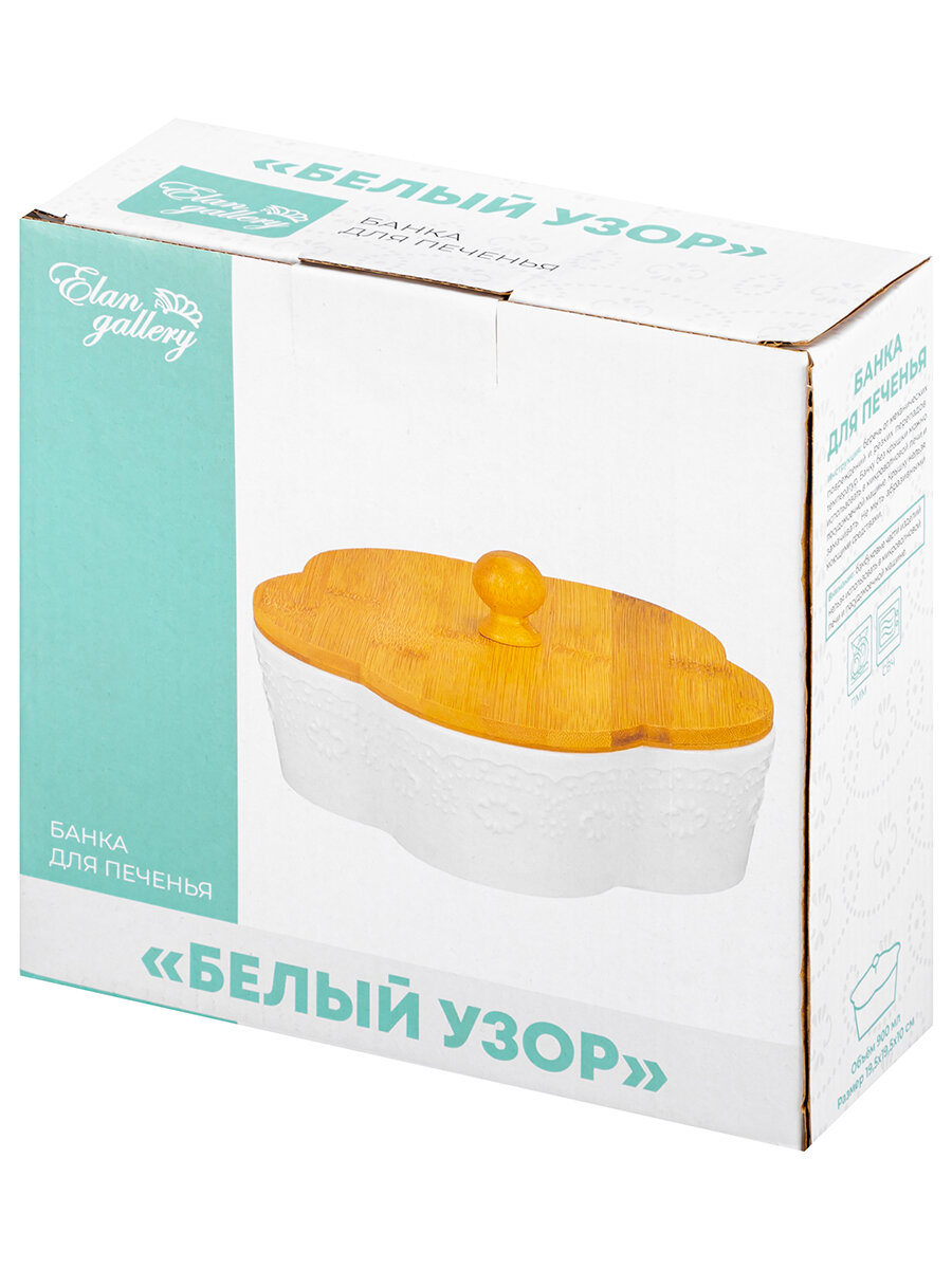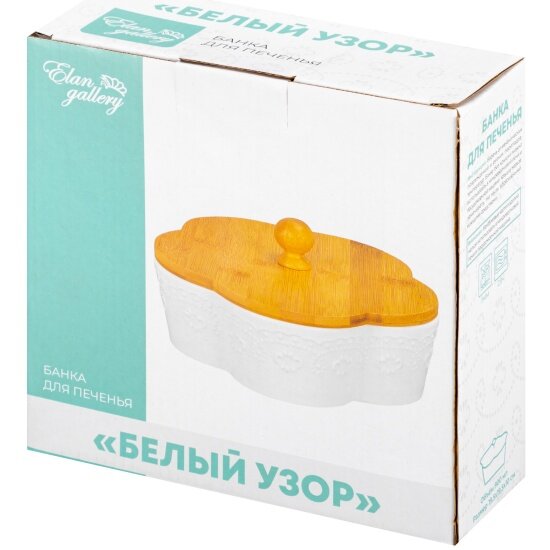 Банка для печенья / для сыпучих продуктов / для чая / кофе 900 мл 19,5х19,5х10 см Elan Gallery Цветок Белый узор с деревянной крышкой