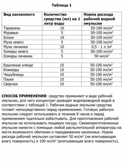 | Дополнительная информация | III класс опасности (умеренноопасные вещества), готовую эмульсию следует использовать в течение 8 часов и перед применением взбалтывать |
