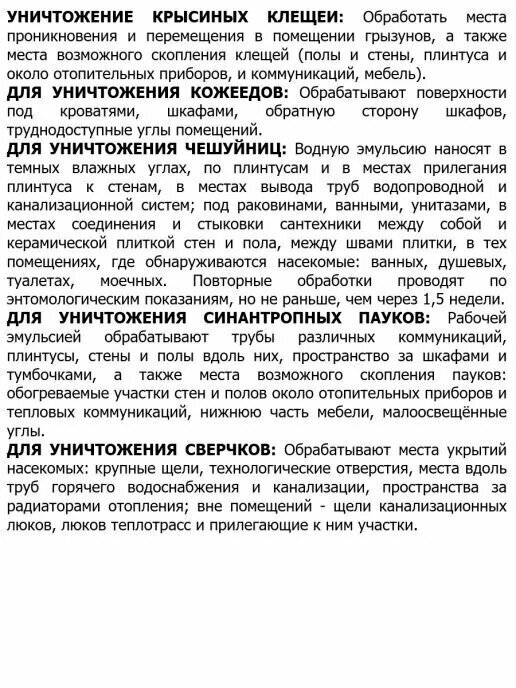 | Вид насекомых | блохи / вши / клещи / клопы / кожееды / комары / личинки / мокрецы / мокрицы / моль / москиты / мошки / муравьи / мухи / осы и шершни / пауки / ползающие насекомые / постельные клопы / сверчки / тараканы / чешуйницы |