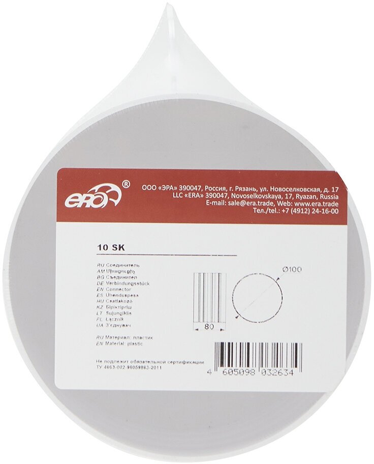 Соединитель пластик 10SK 100 мм ERA 88-008