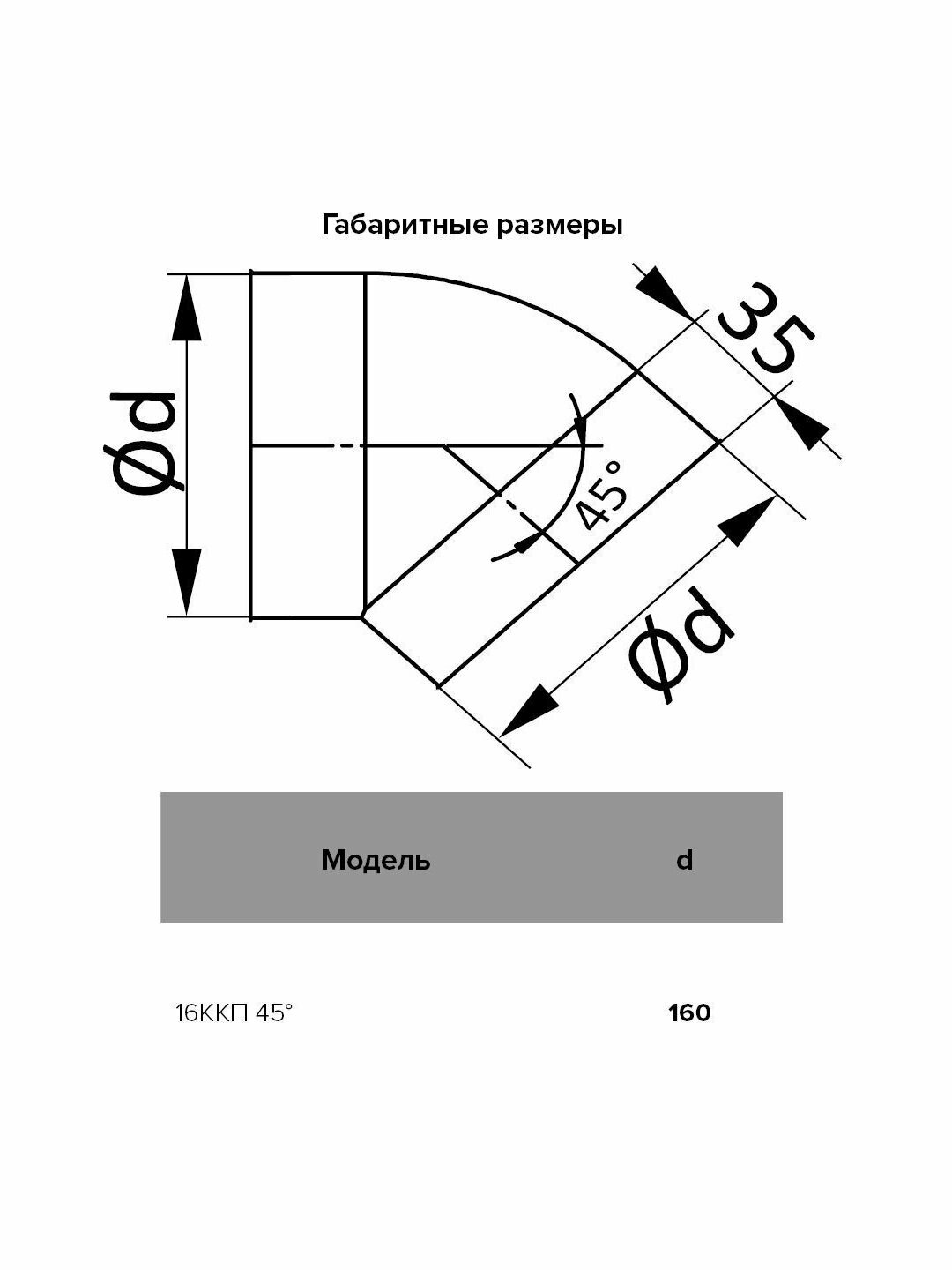| Угол отвода | 45° |
