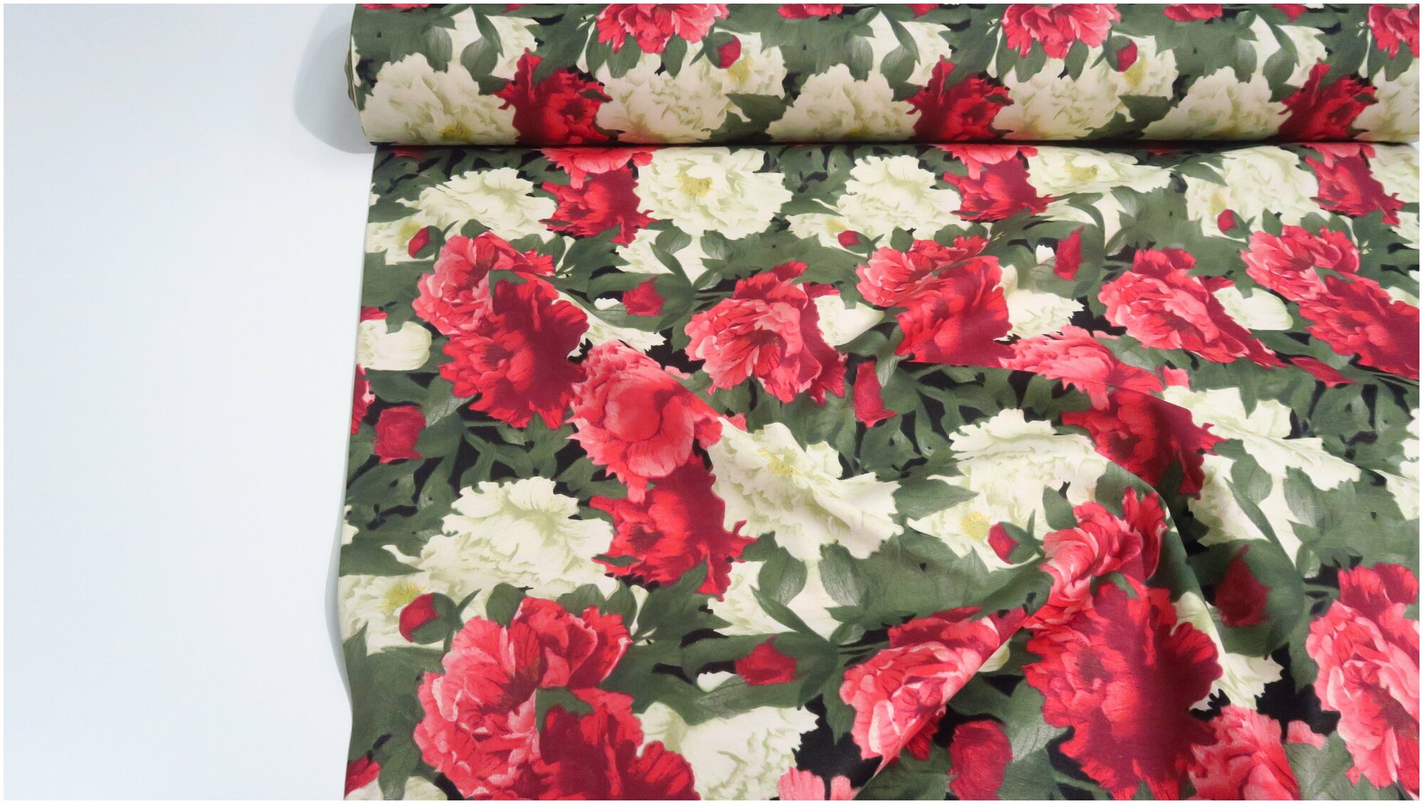 Купить Ткань DUCK с водоотталкивающей пропиткой, принт: "Пионы" красные (100 см. x 180 см.)