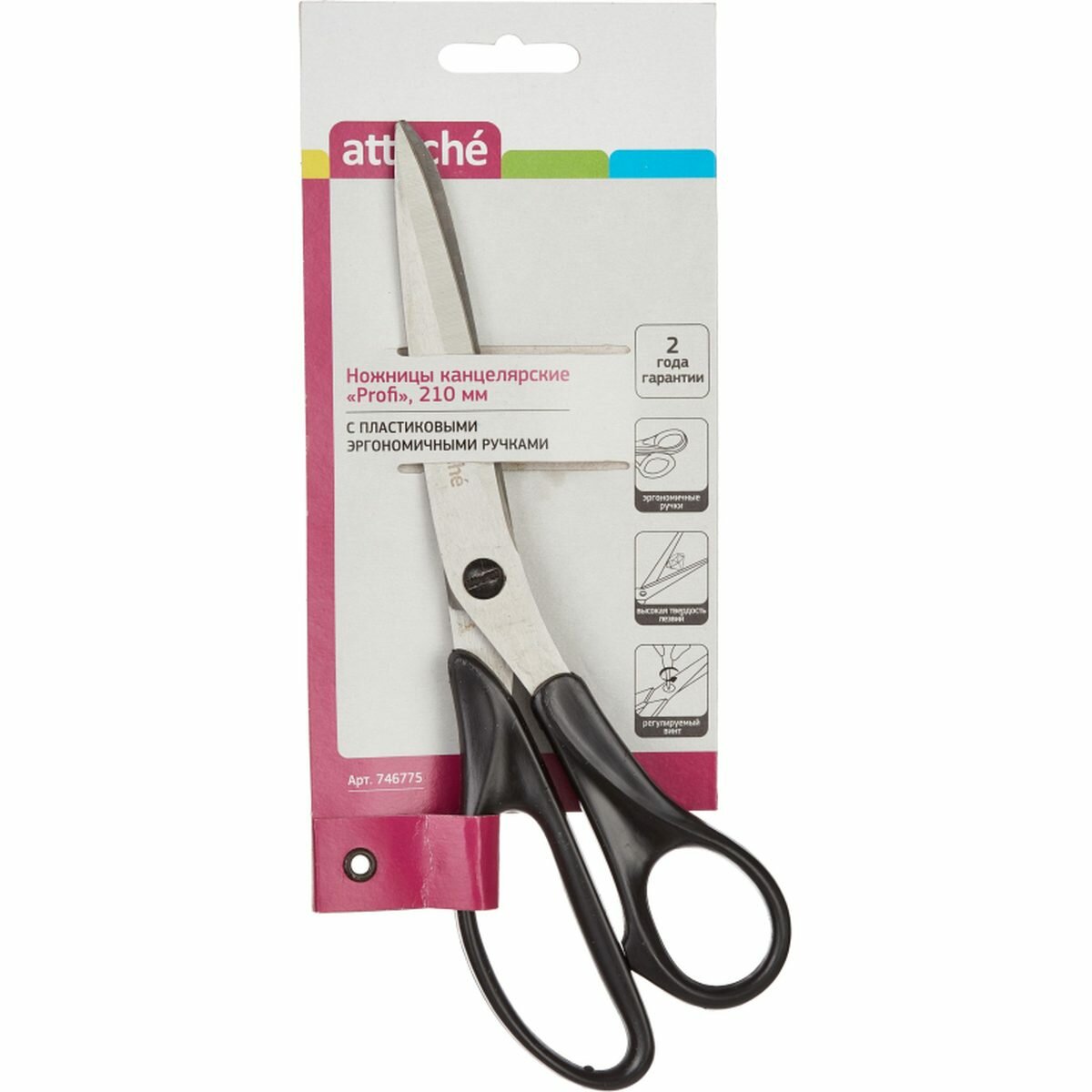 Ножницы Attache Profi, 210 мм., эргоном. ручки,цв черный,карт.подложка, 746775КТ