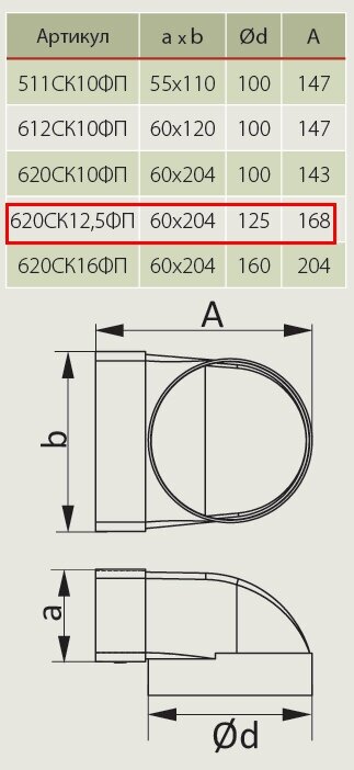 Соединитель для воздуховода угловой '620СК12,5ФП' ? 125 / 60х204