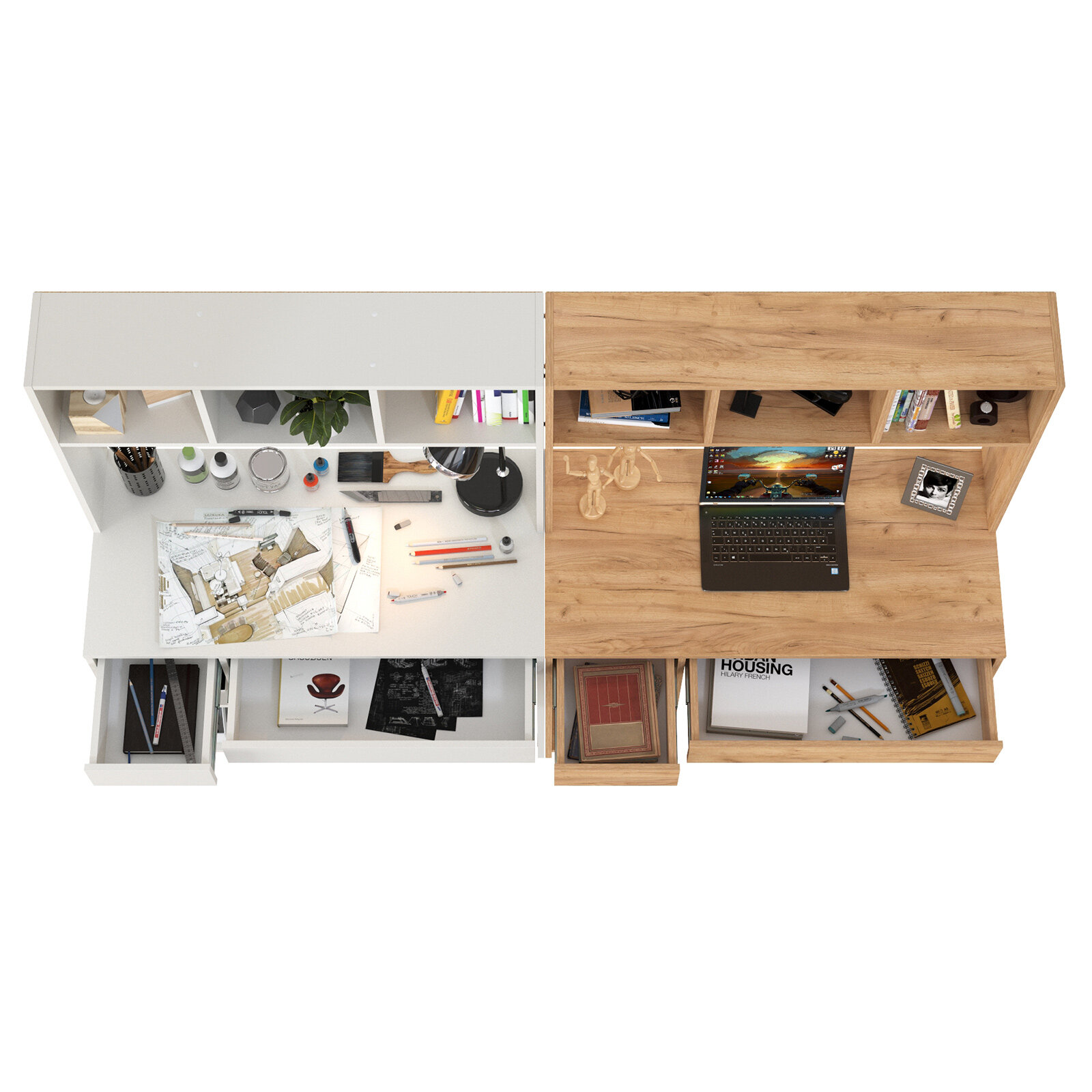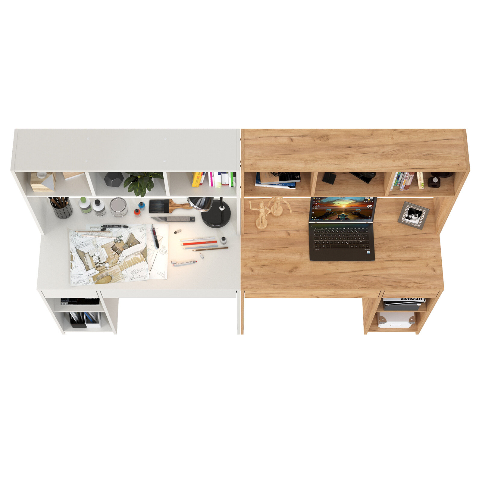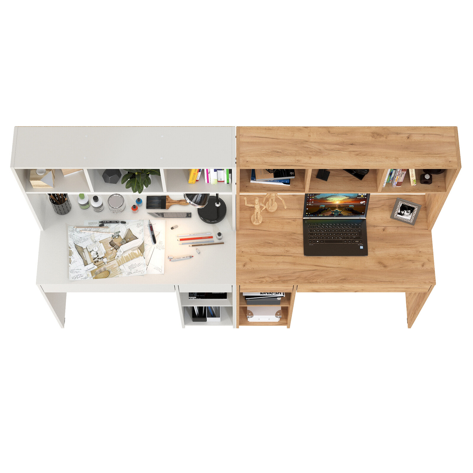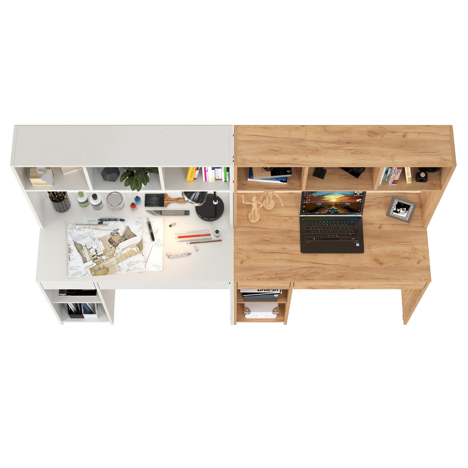 Два компьютерных стола Mobi Комфорт 12.77F цвет белый шагрень/дуб крафт золотой, 200х49,8х147 см, ун.сб.