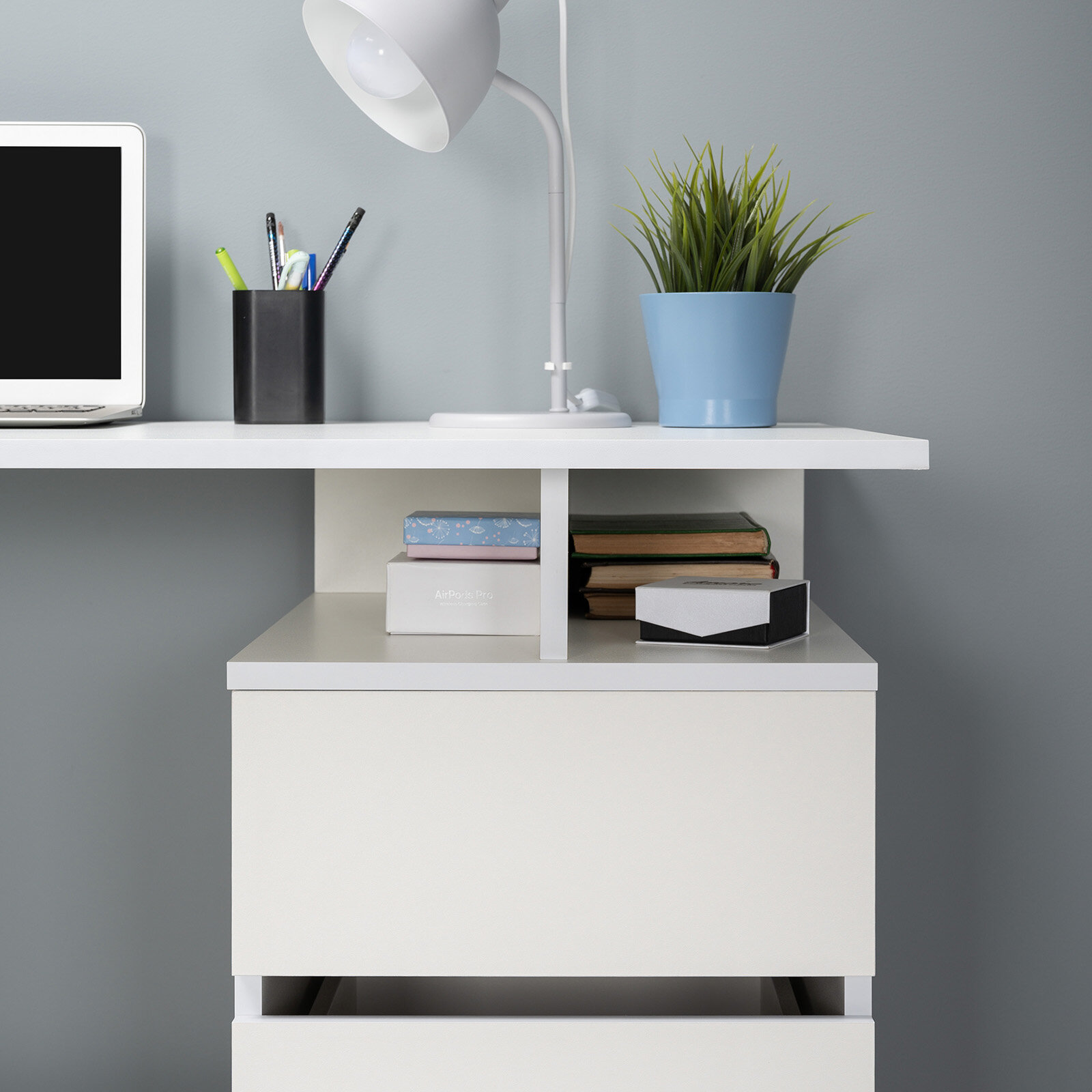 Стол письменный, компьютерный Санди 12.156 с тумбой и выдвижными ящиками, 115х60х75 см, цвет Дуб эндгрейн, Белый PE шагрень