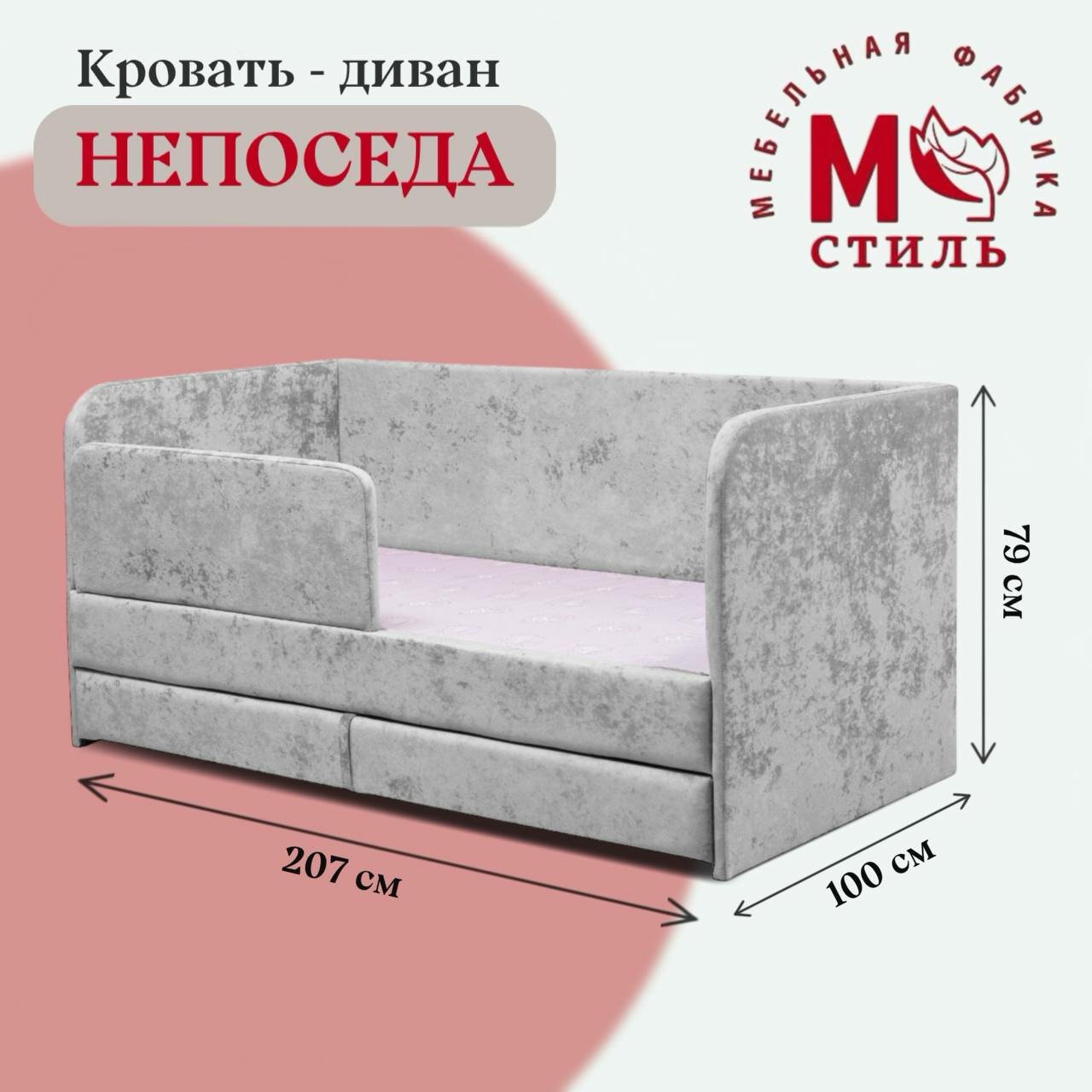 СохранитьКровать-диван "Непоседа" серая 200х90 см, 2 спальных места, с ящиком, защитным бортиком интересное: