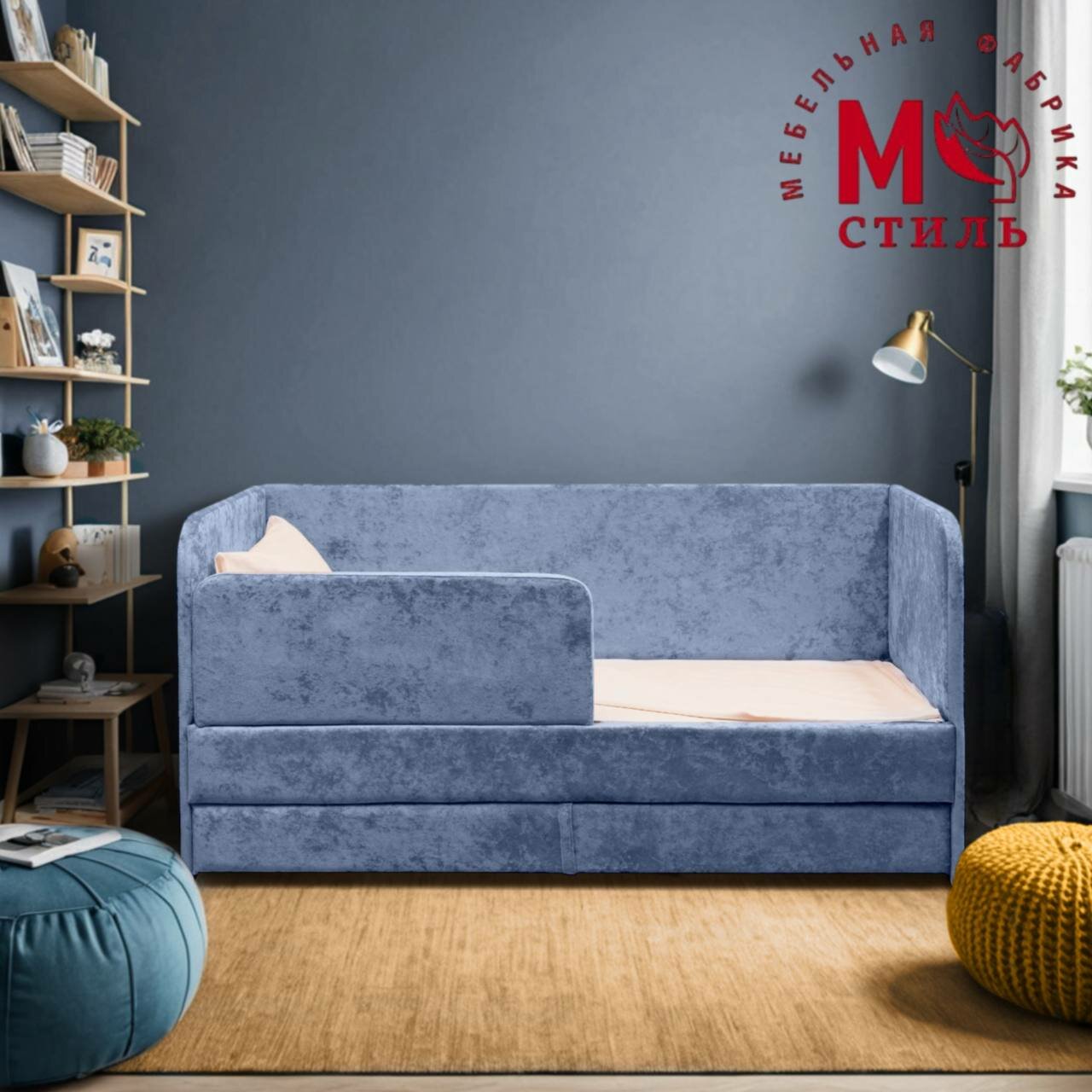 СохранитьКровать-диван "Непоседа" голубая 200х90 см, 2 спальных места, с ящиком, защитным бортиком интересное: