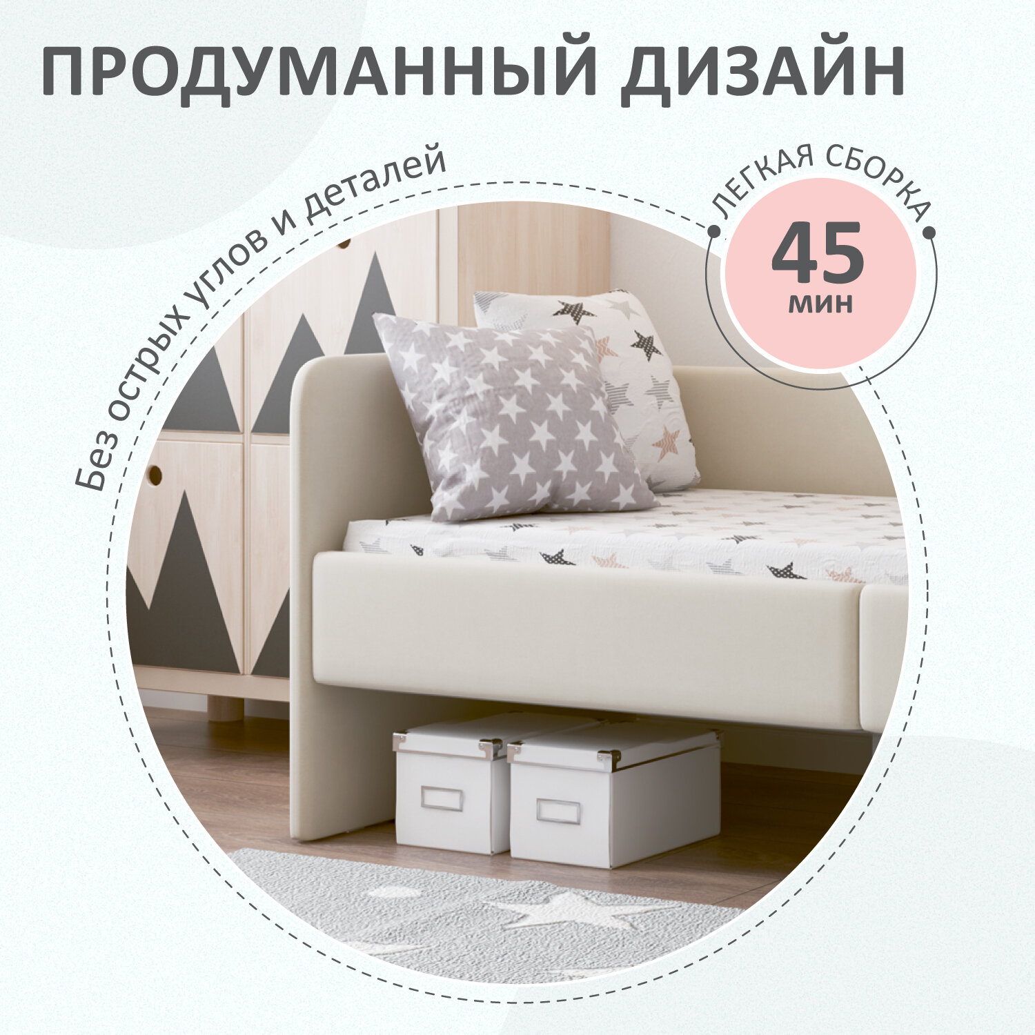 Кровать детская Romack Donny 160х70 с ортопедическим основанием, мягким изголовьем, светло-бежевый микровелюр