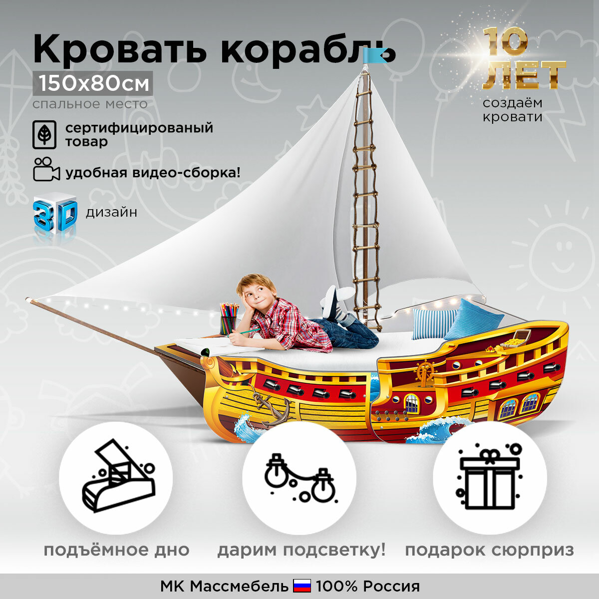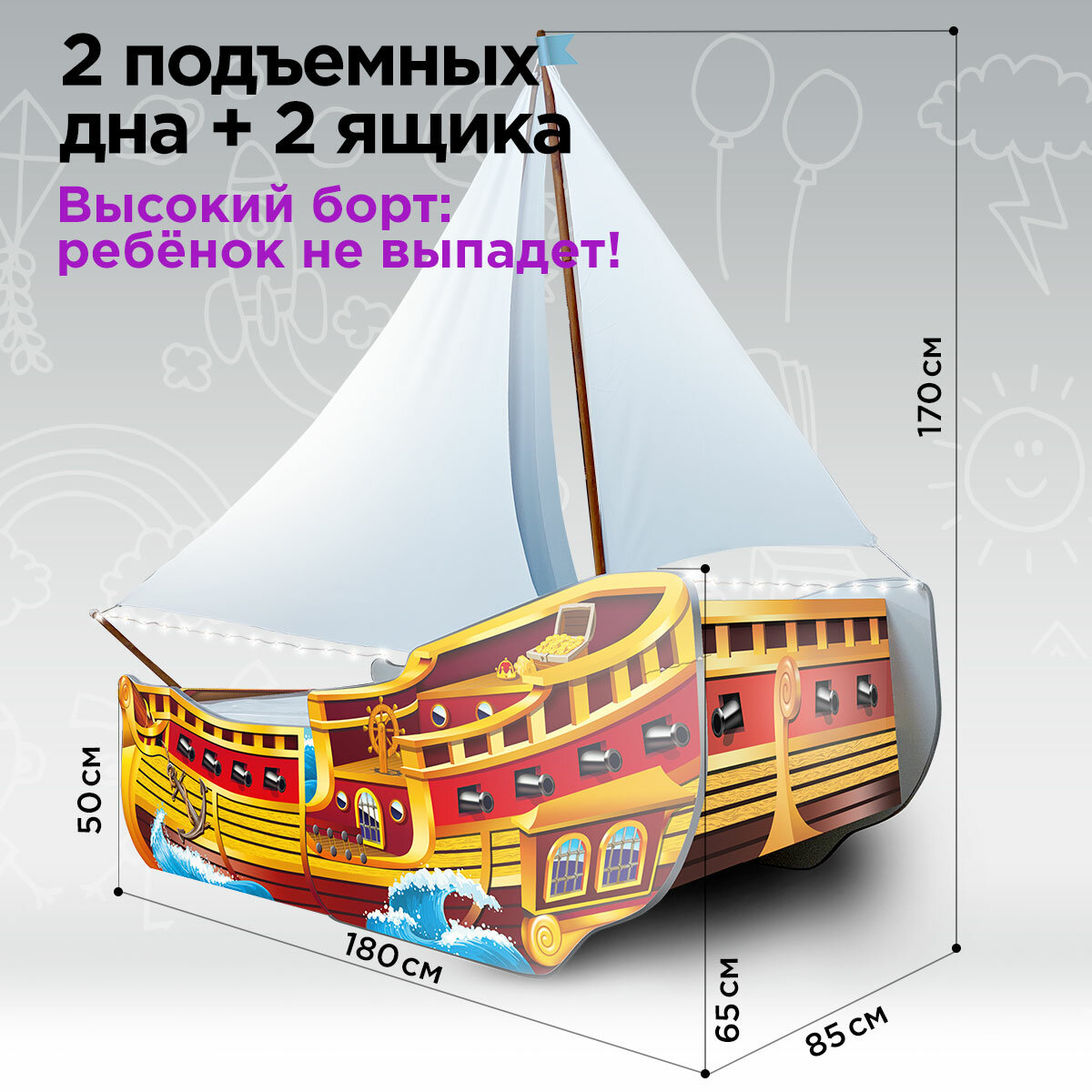 СохранитьКровать Корабль "Фрегат" кровать детская для мальчика - 180/85/170см интересное: