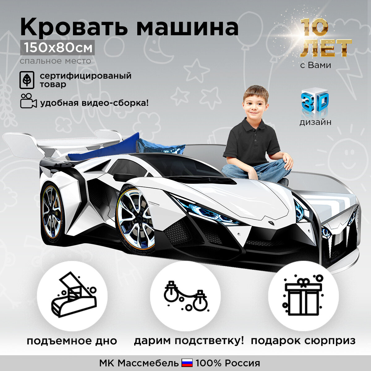 СохранитьКровать машина «Ламба Лайт 4.0» детская кровать для мальчика Белая - 174/85/49см интересное: