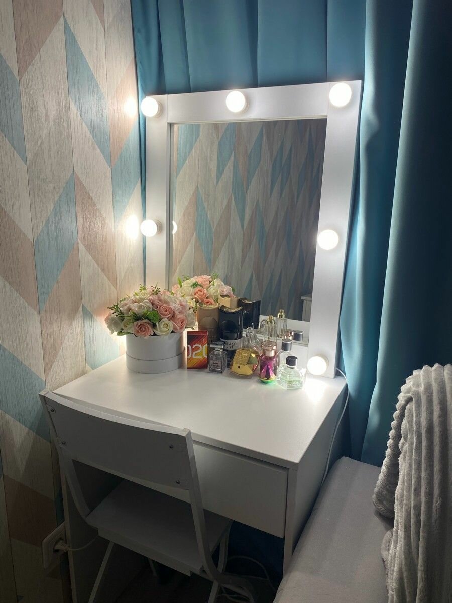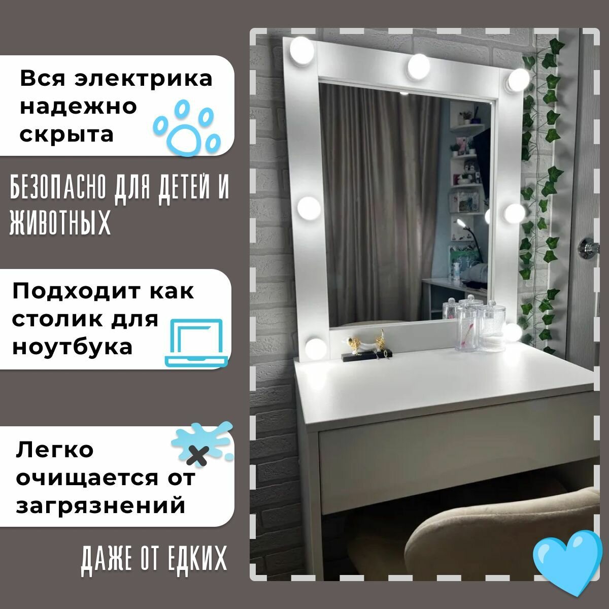 СохранитьТуалетный столик с зеркалом и подсветкой, с ящиком, 145х60 см, Микс-4, Цвет белый интересное: