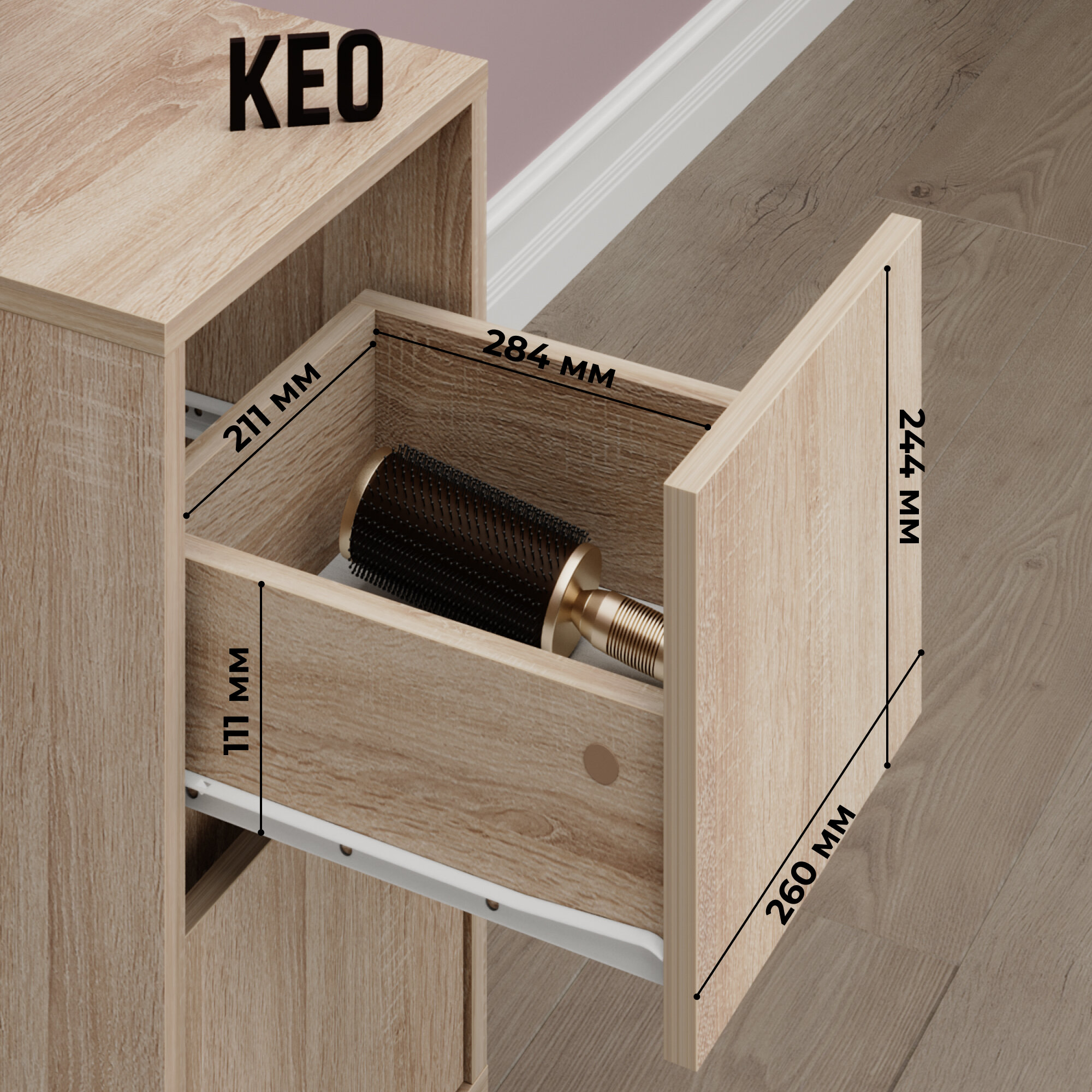 Тумба прикроватная "Кео" сонома, 2 ящика, 57х35х30 см