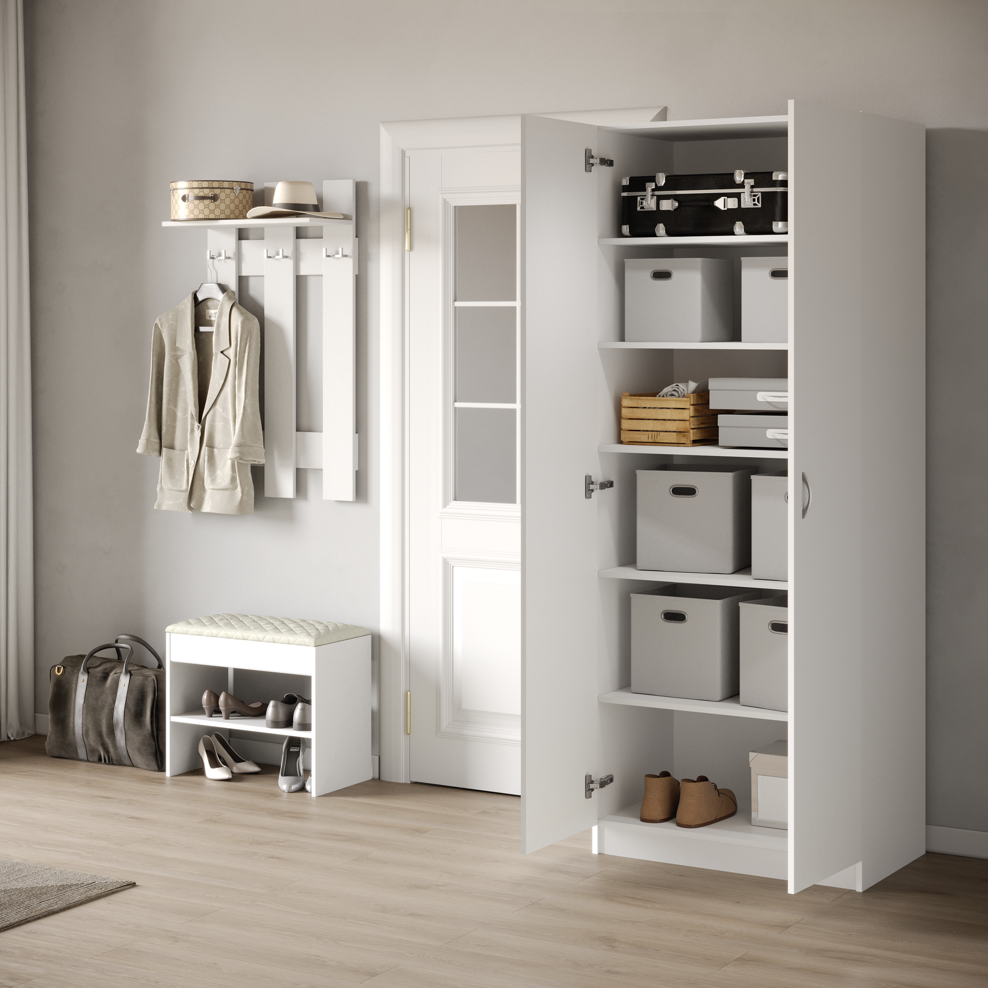 Шкаф с полками для одежды белый распашной, в прихожую, спальню, детскую