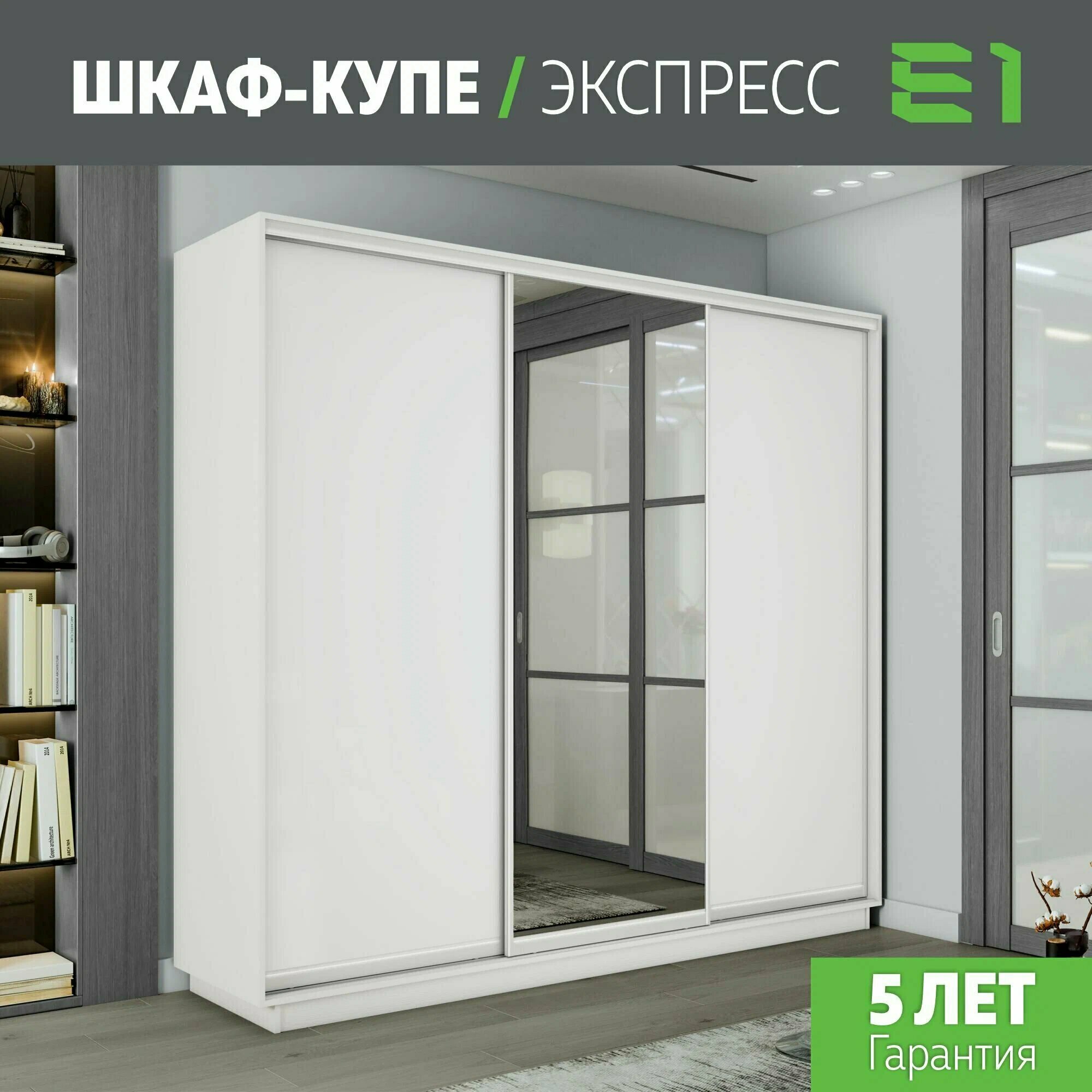 Шкаф-купе Экспресс 3-х дверный, Зеркала, 180х60х220, Мебельная компания Е1, Белый