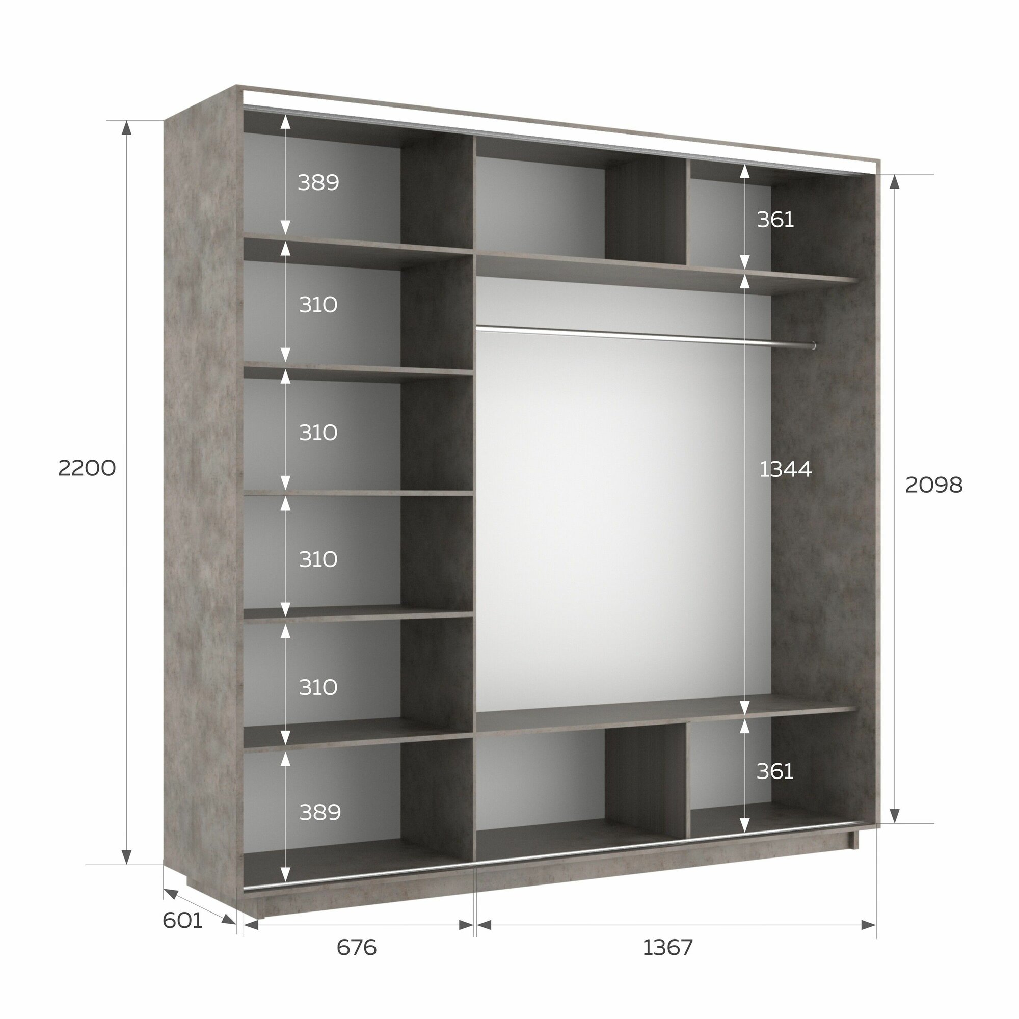 Шкаф-купе Экспресс Медиум 3-x дв 210 x 240 x 60 Зеркало Бетон
