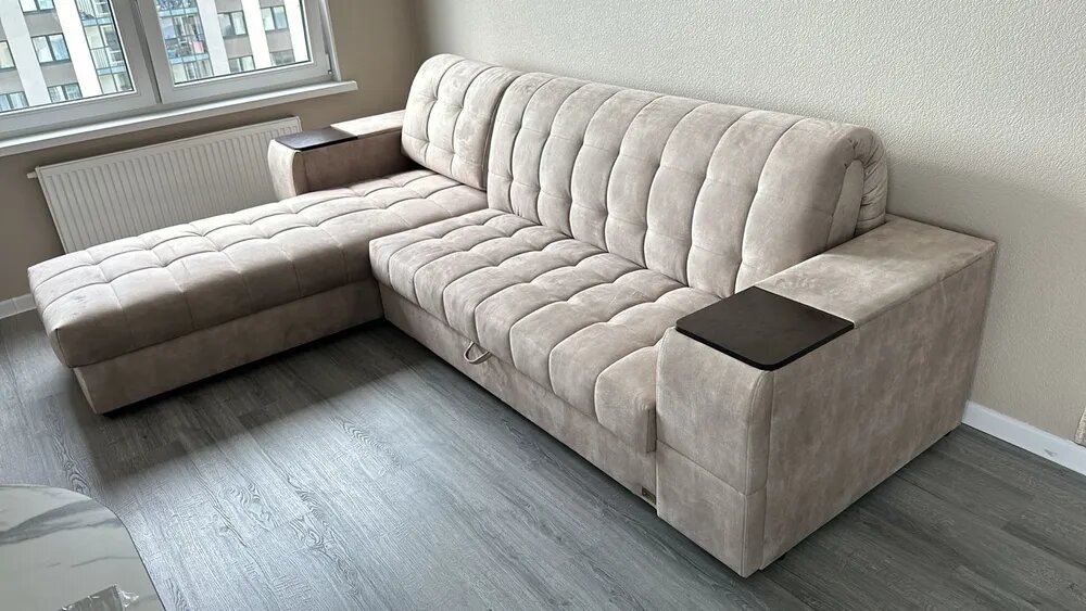 СохранитьУгловой диван Аккорд-6, аккордеон на пружинном блоке, с журнальным столиком и ящиком для белья, металлокаркас, ортопедическое основание, спальное место 230×200 см, общая ширина дивана 290 см интересное:
