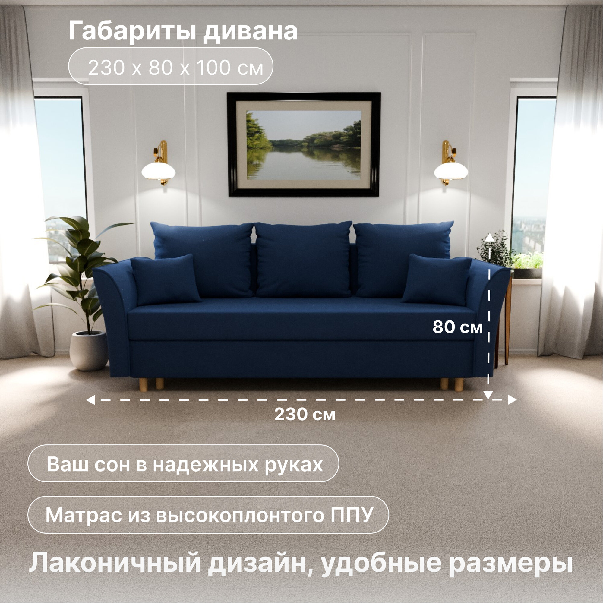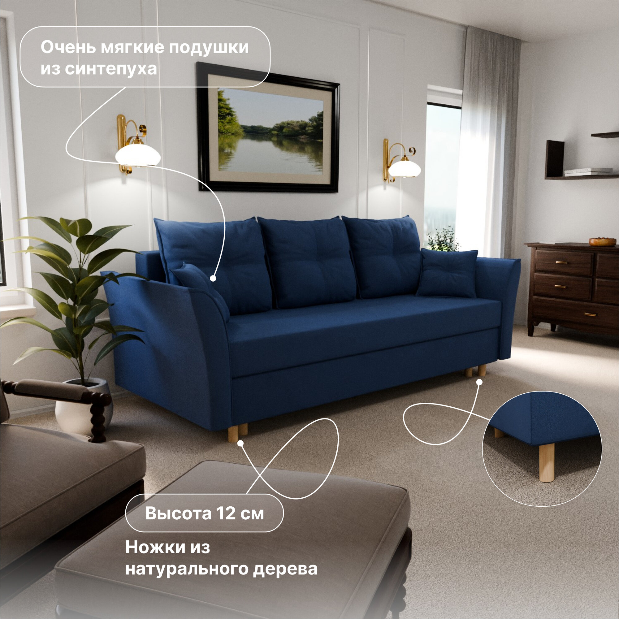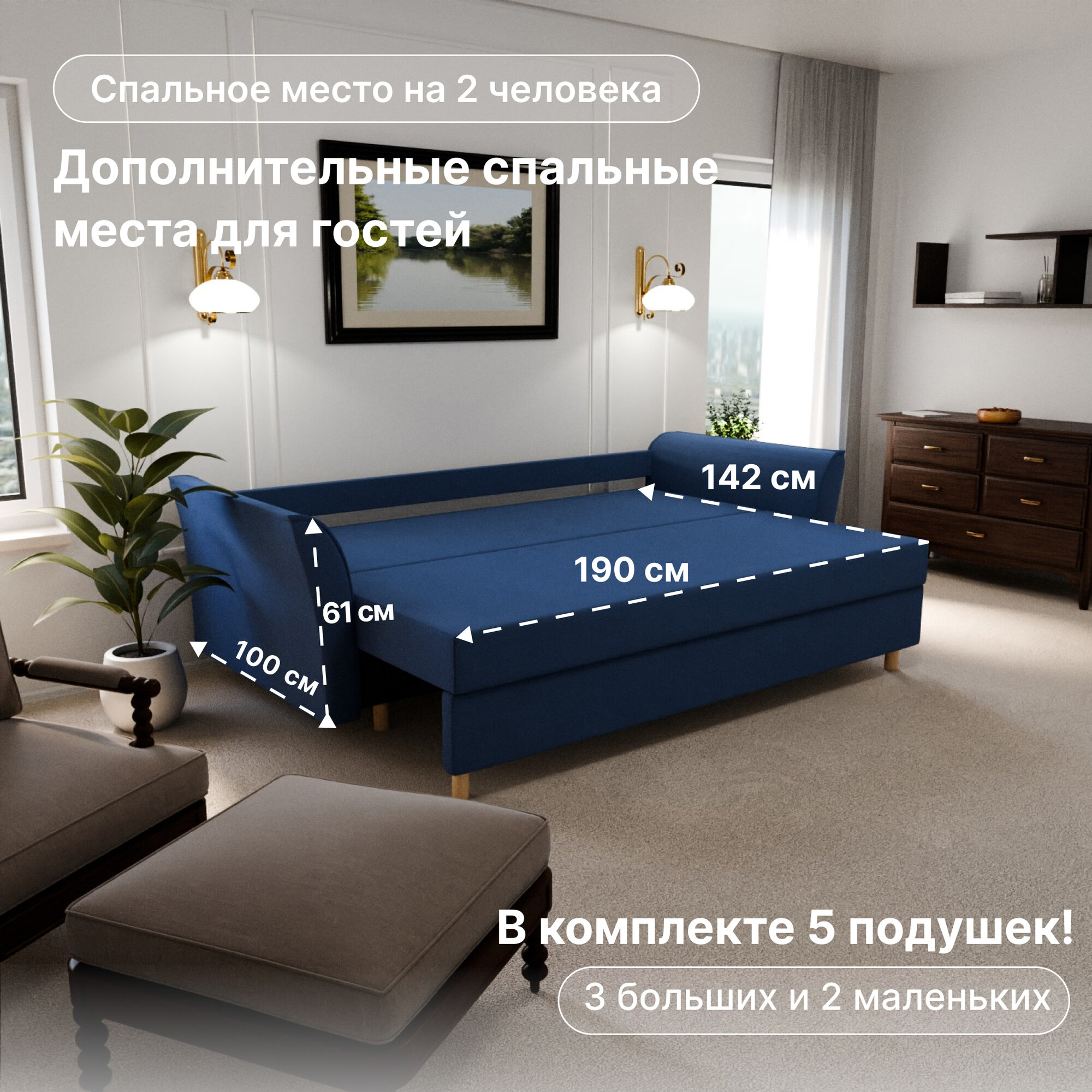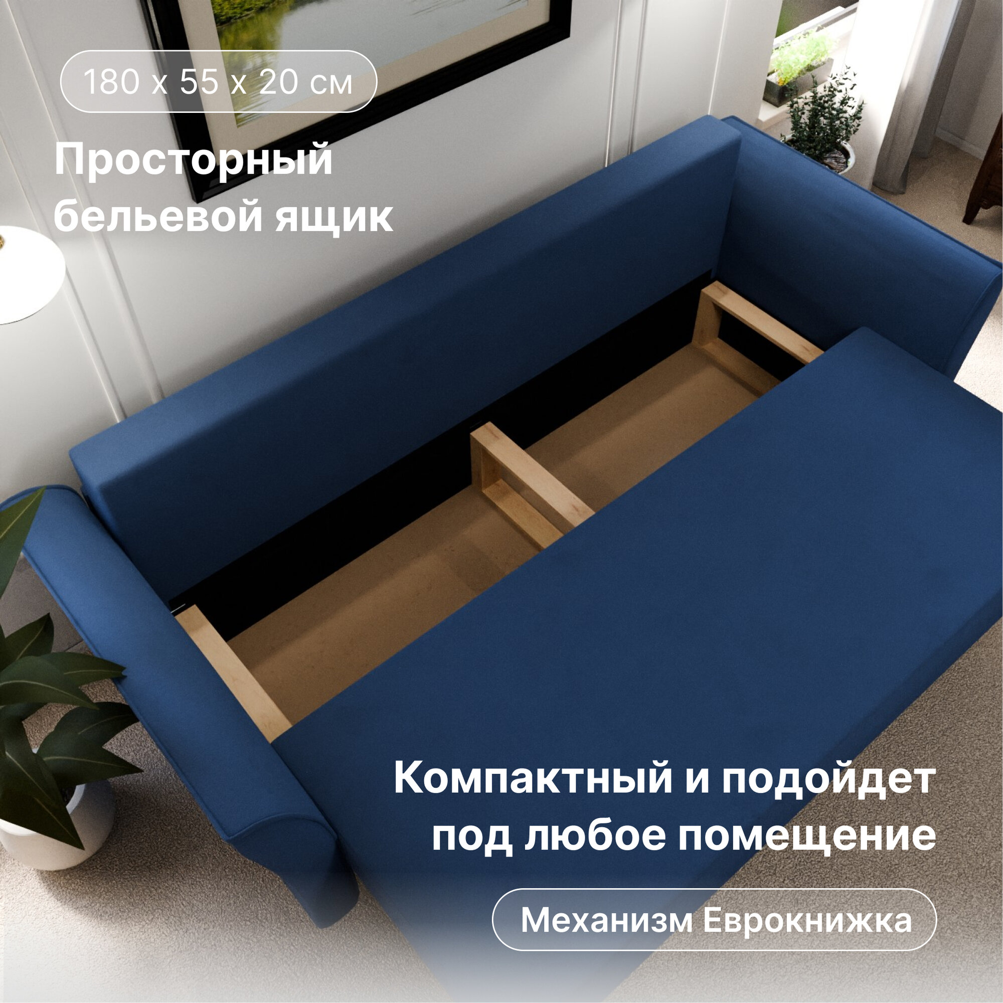 | Особенности | раскладная конструкция, с подлокотниками, съемные подушки, ящик для белья |