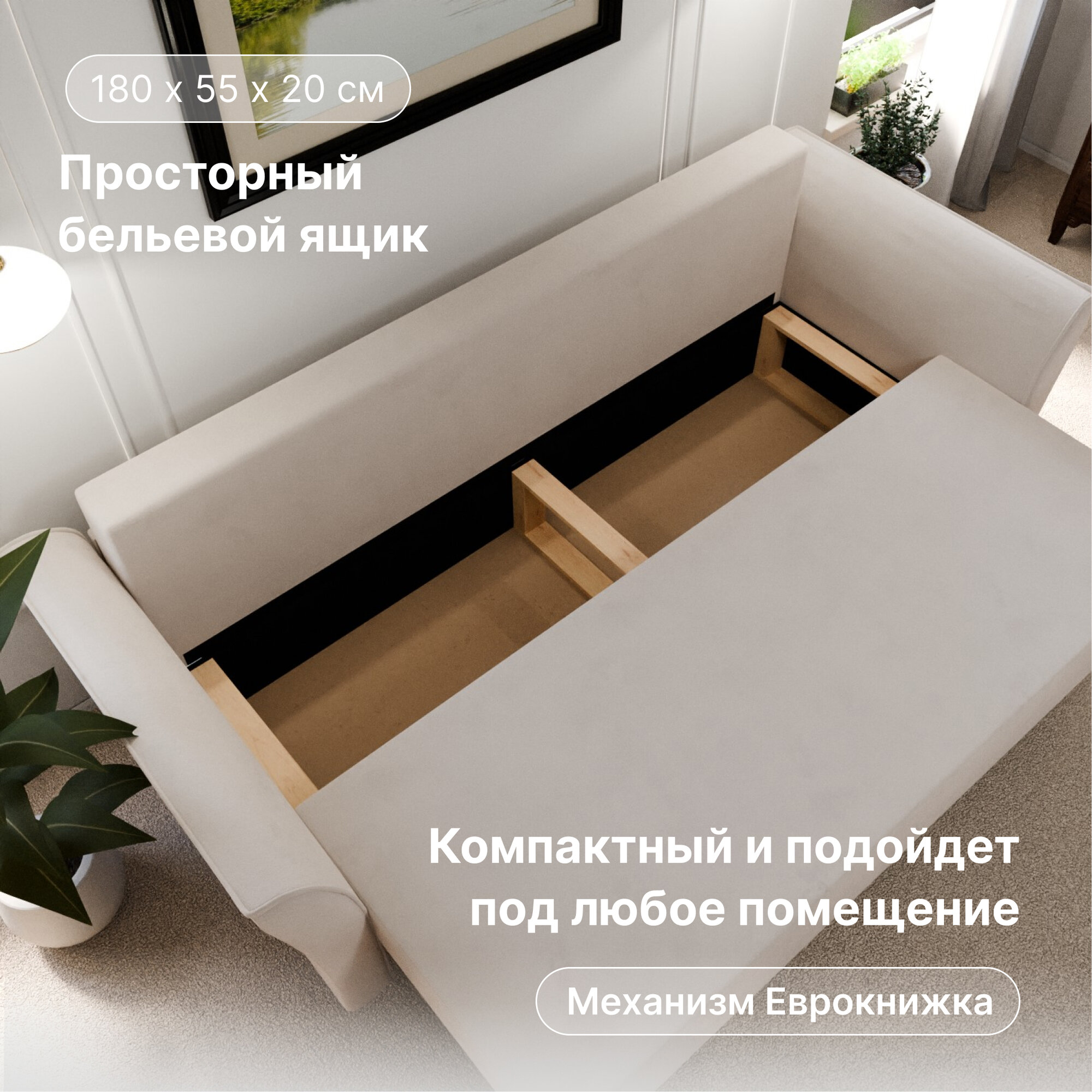 | Особенности | раскладная конструкция, с подлокотниками, съемные подушки, ящик для белья |