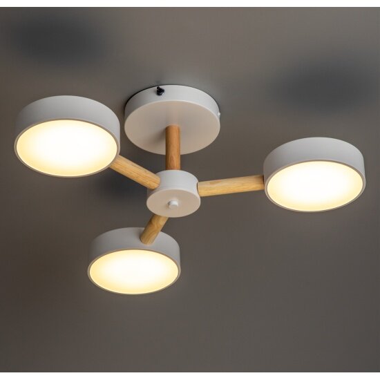 Люстра потолочная светодиодная с пультом Ritter SCANDIA, 45Вт, до 17кв.м., цвет белый/дерево, 51589 4