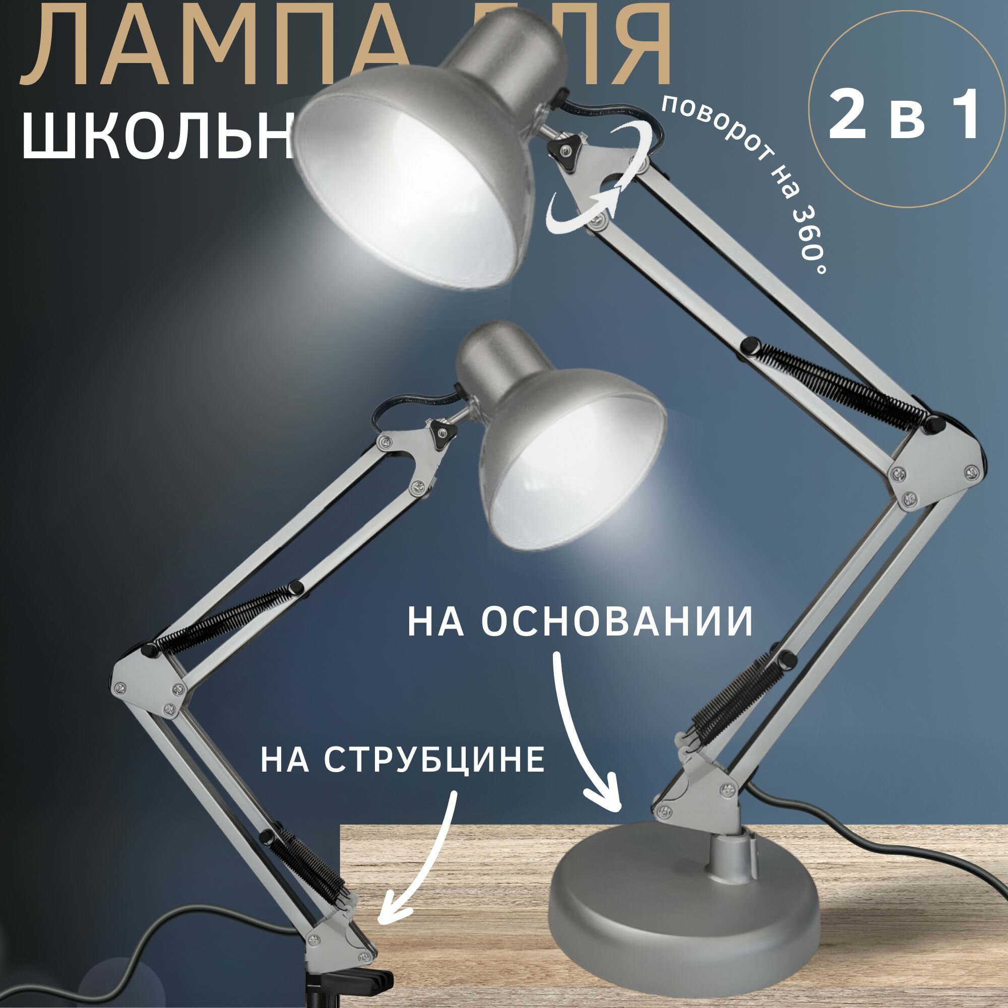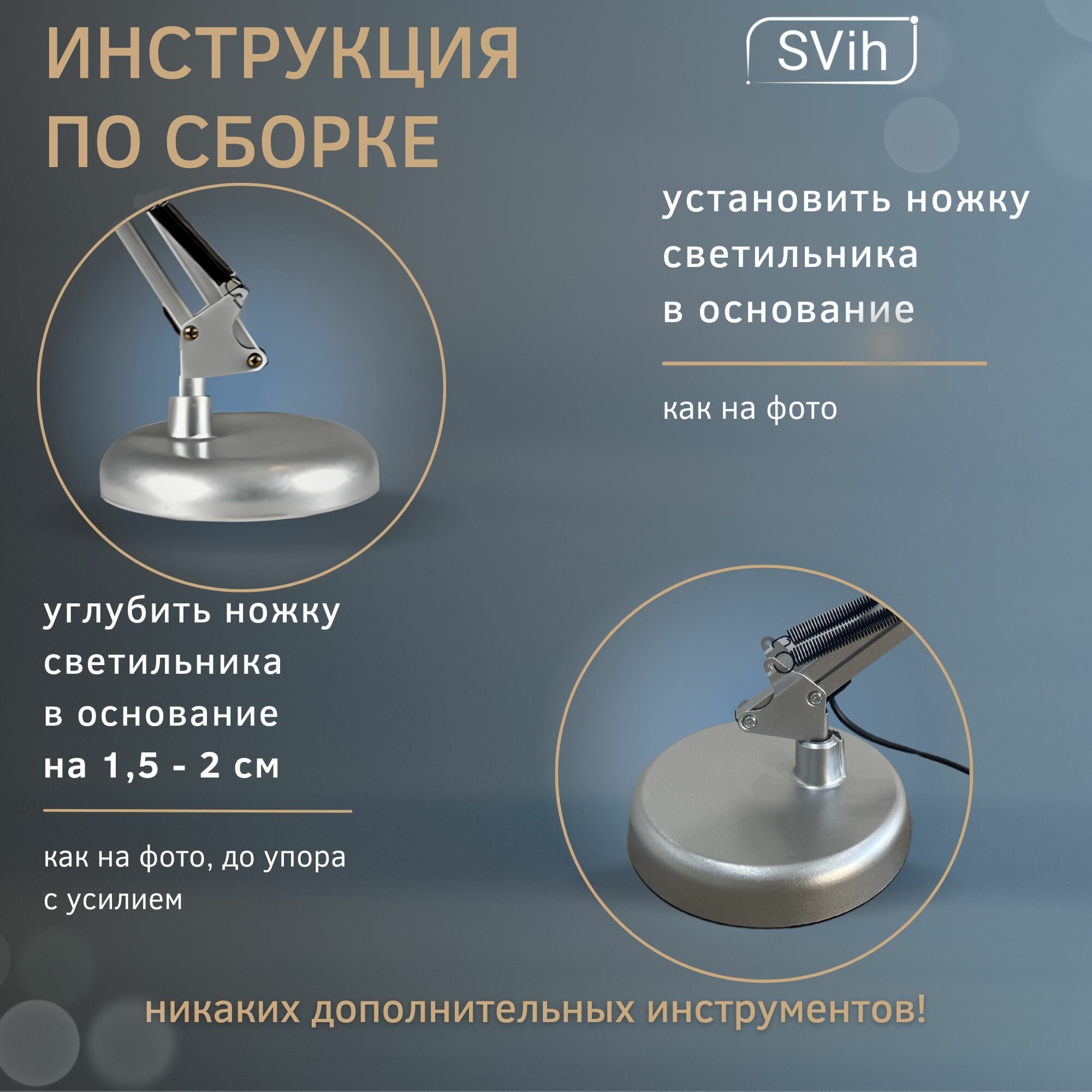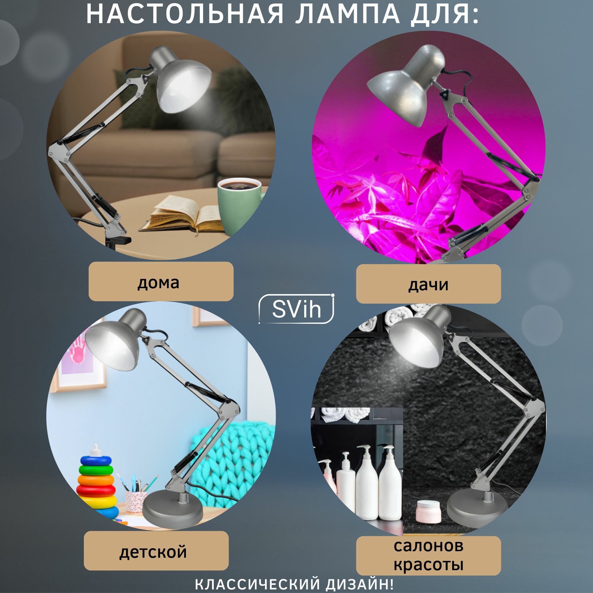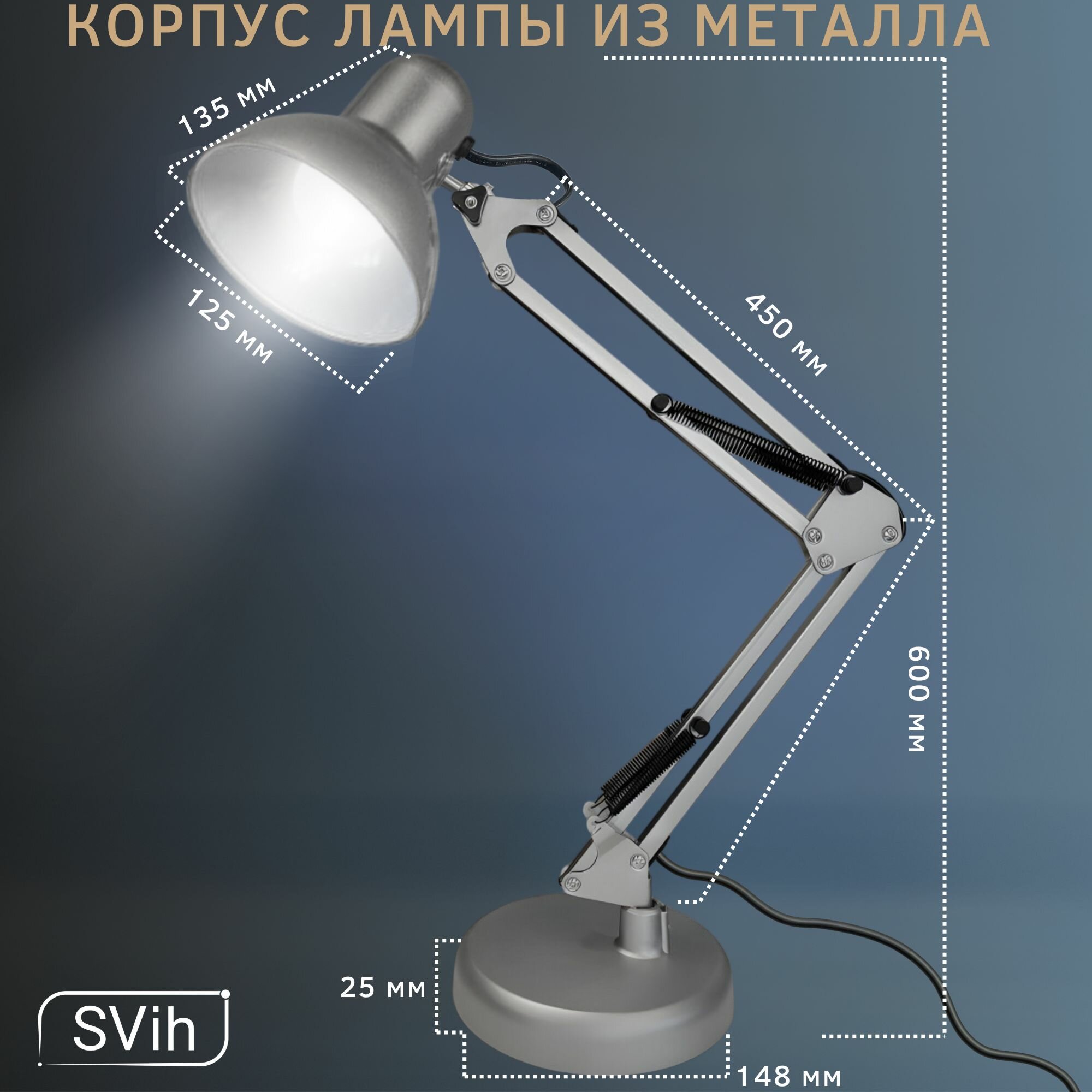 Настольная лампа SVih, цоколь E27, поворотная, серебристый плафон, 60 Вт, на струбцине интересное: