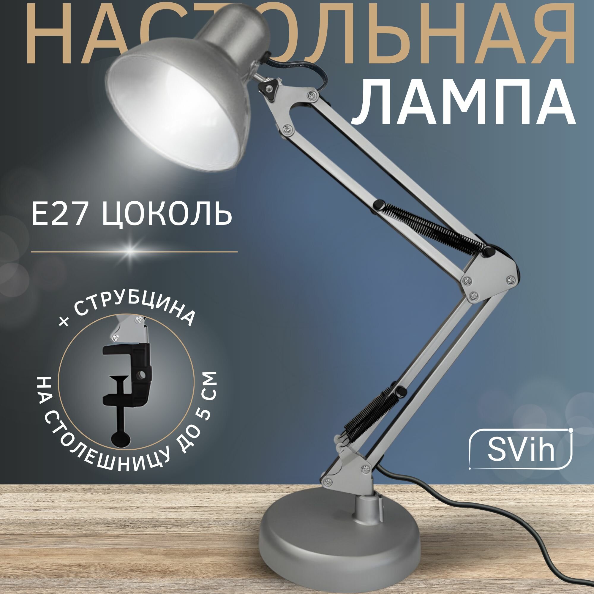 Купить Настольная лампа SVih, цоколь E27, поворотная, серебристый плафон, 60 Вт, на струбцине