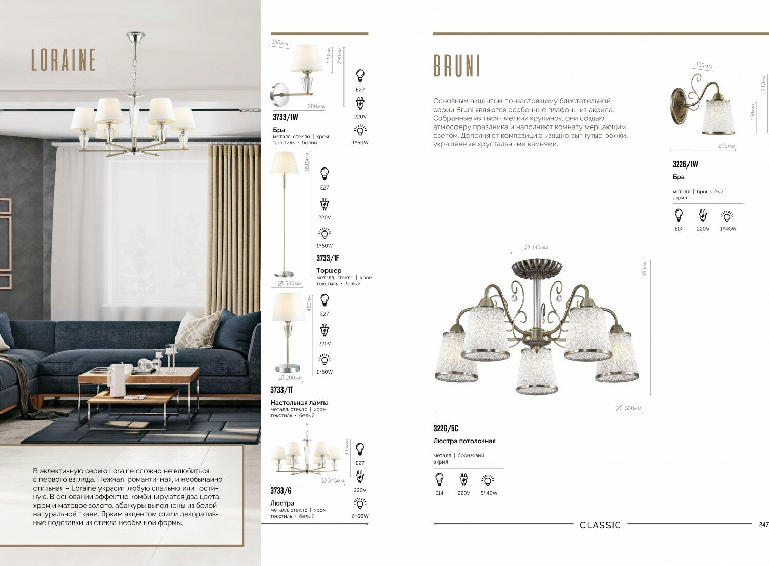 | Особенности | возможность подключения диммера / с абажуром |