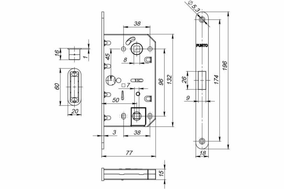 Замок магнитный врезной Punto (Пунто) ML96WC-50 CP хром для межкомнатных дверей