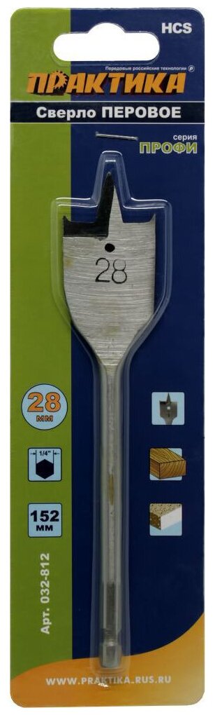 Сверло по дереву перовое ПРАКТИКА 28 х 152 мм (1шт.), шестигранный хвостовик интересное: