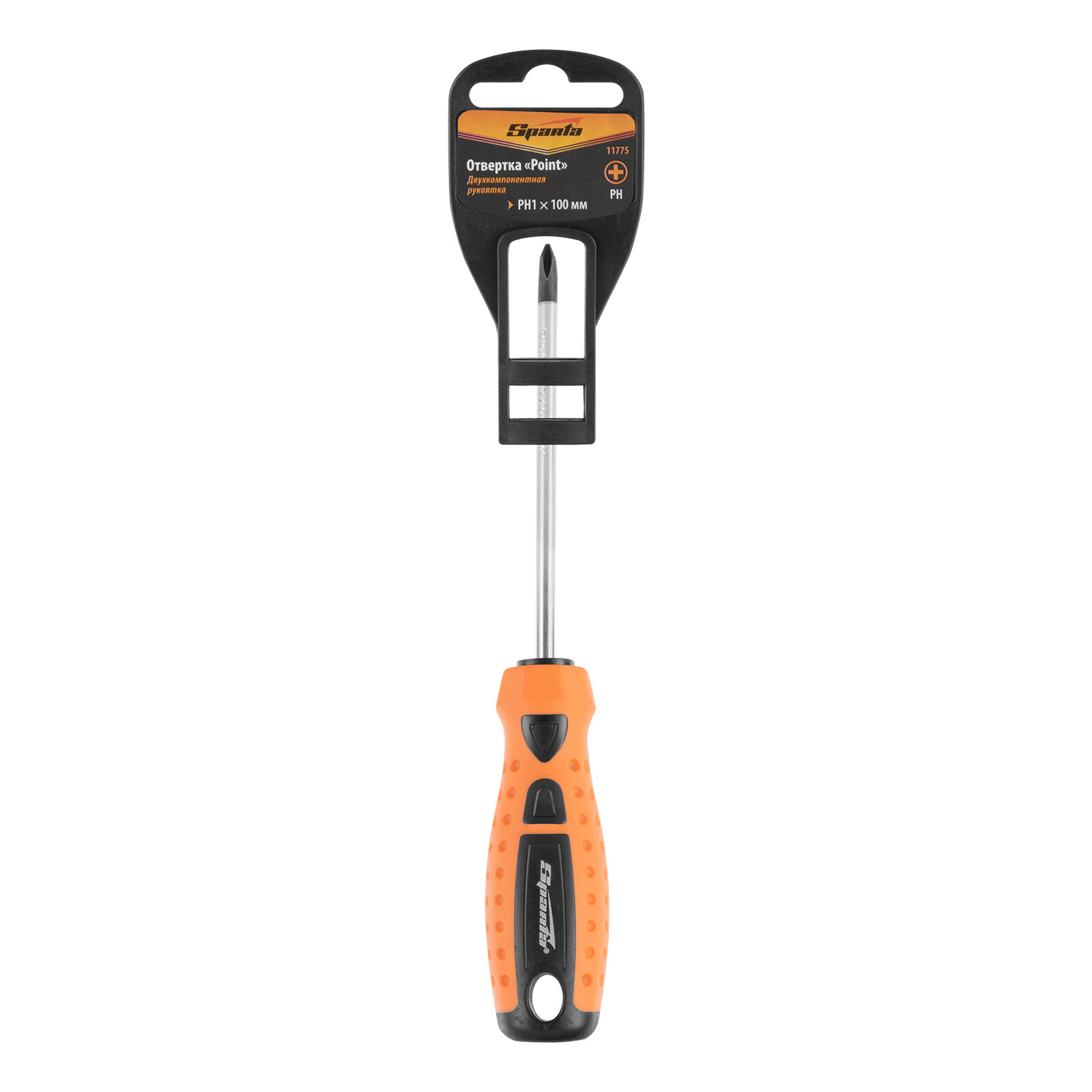Отвертка "Point", PH1 х 100 мм, CrV, двухкомпонентная рукоятка Sparta, 11775 интересное: