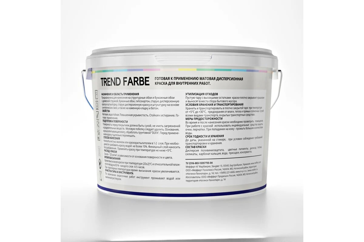 | Дополнительная информация | Краска в/д DUFA Trend Farbe Black для стен и потолков 10л черная, арт. МП00-005871 |