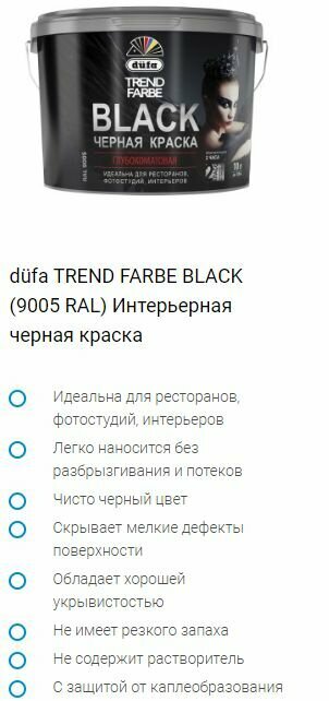 СохранитьКраска интерьерная DUFA Trend Farbe Black глубокоматовая черная (RAL 9005) 10 л интересное: