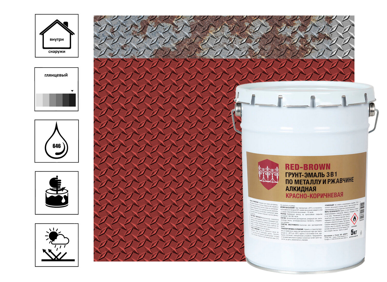 Грунт эмаль 3 в 1 стандарт красно-коричневая (5кг) интересное: