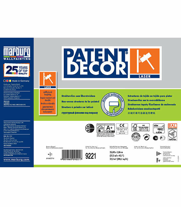 Ниже Вы можете прочитать отзывы на Обои под покраску виниловые на флизелиновой основе фактурные антивандальные Marburg Laser 9221 (1,06х25 м) плотность 168 г/кв. м, ознакомится с подробными характеристиками, посмотреть интересные обзоры и фотографии на Обои под покраску виниловые на флизелиновой основе фактурные антивандальные Marburg Laser 9221 (1,06х25 м) плотность 168 г/кв. м.