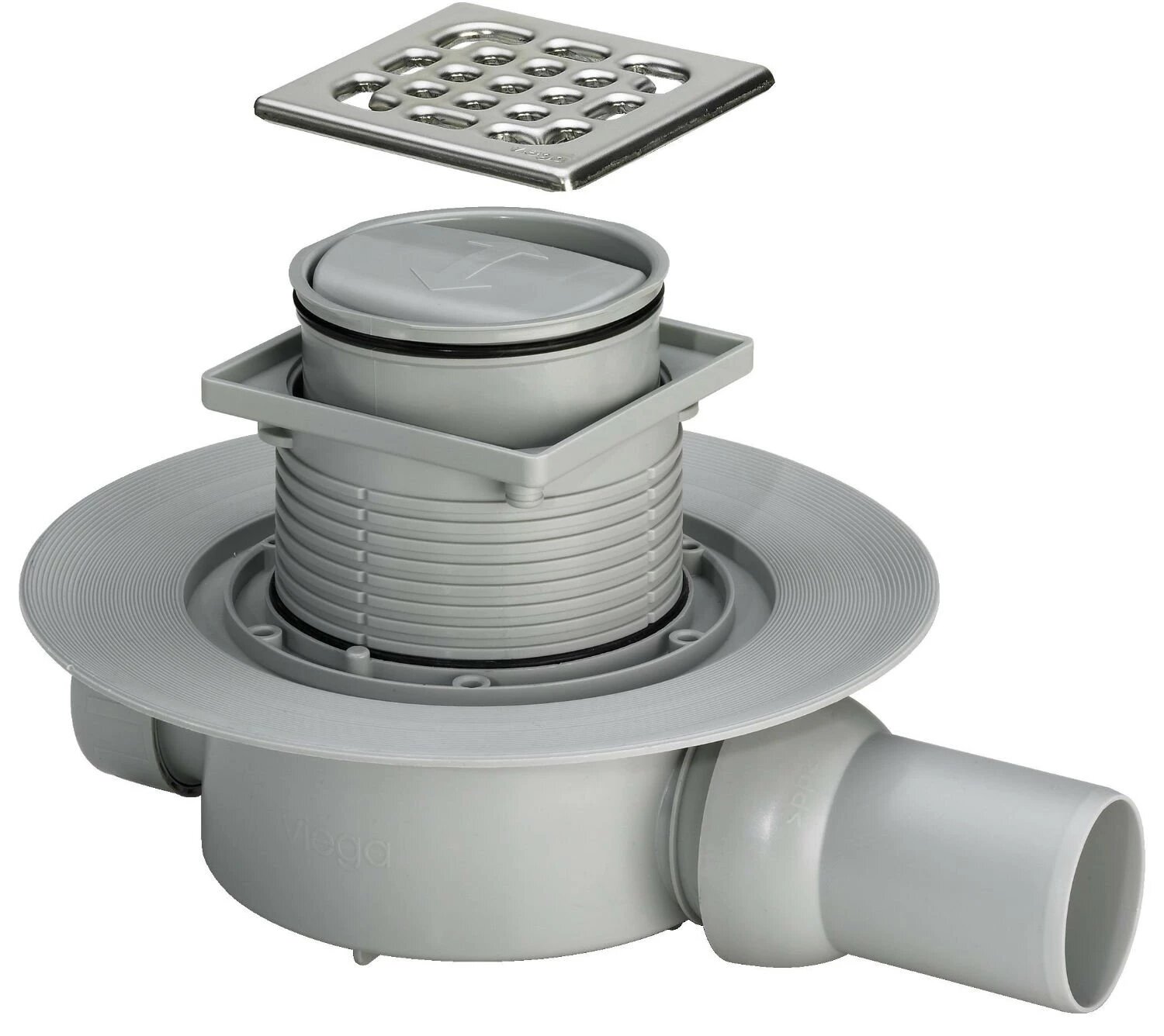 Душевой трап модель 4936.2 Viega Advantix 583217 100x100/50 мм, с решеткой, перфорированный, хром