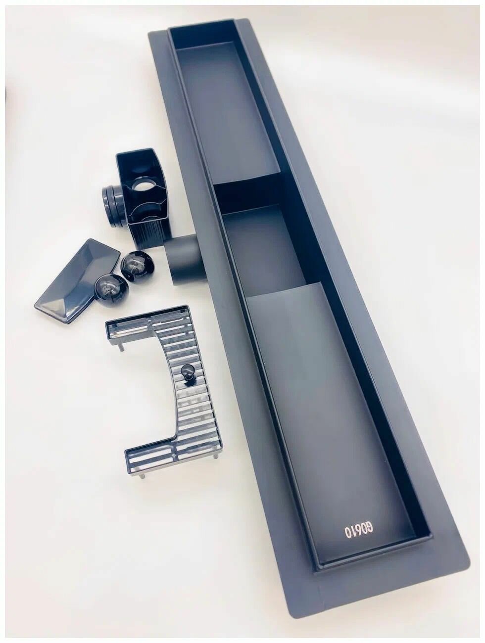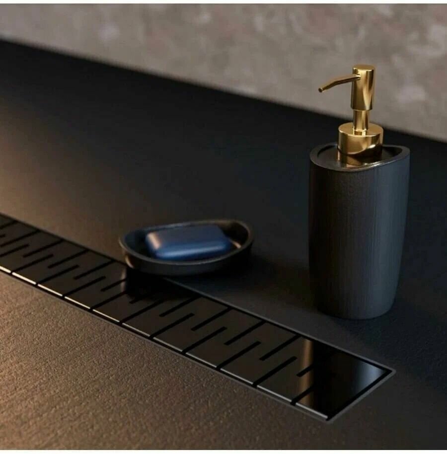 Душевой трап (лоток) TIM 70 мм/700 мм с решеткой защита от запахасухой + гидрозатвор) цвет черный-матовый BAD467002BK