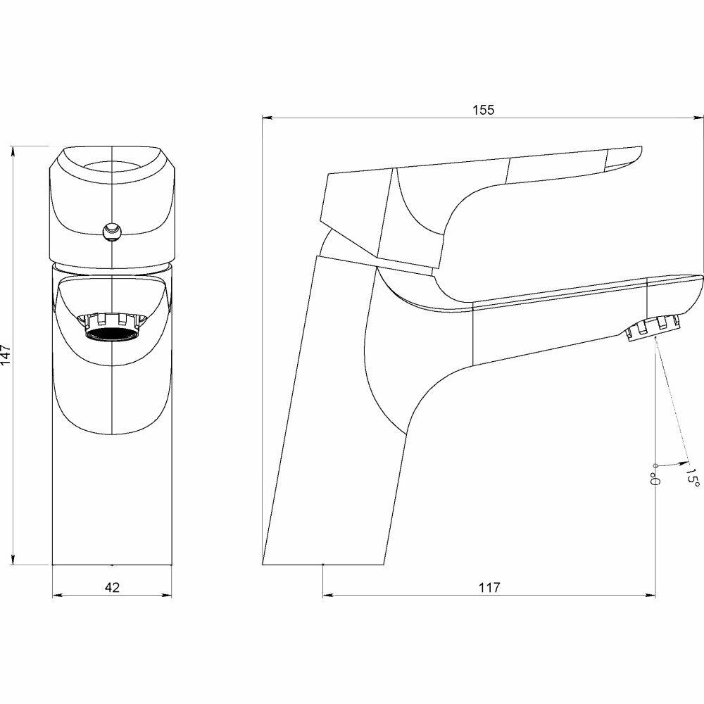 Смеситель для раковины Damixa Jupiter 770210301 черный, излив 117 мм, керамический картридж Light Flow, аэратор EcoSave, , латунь