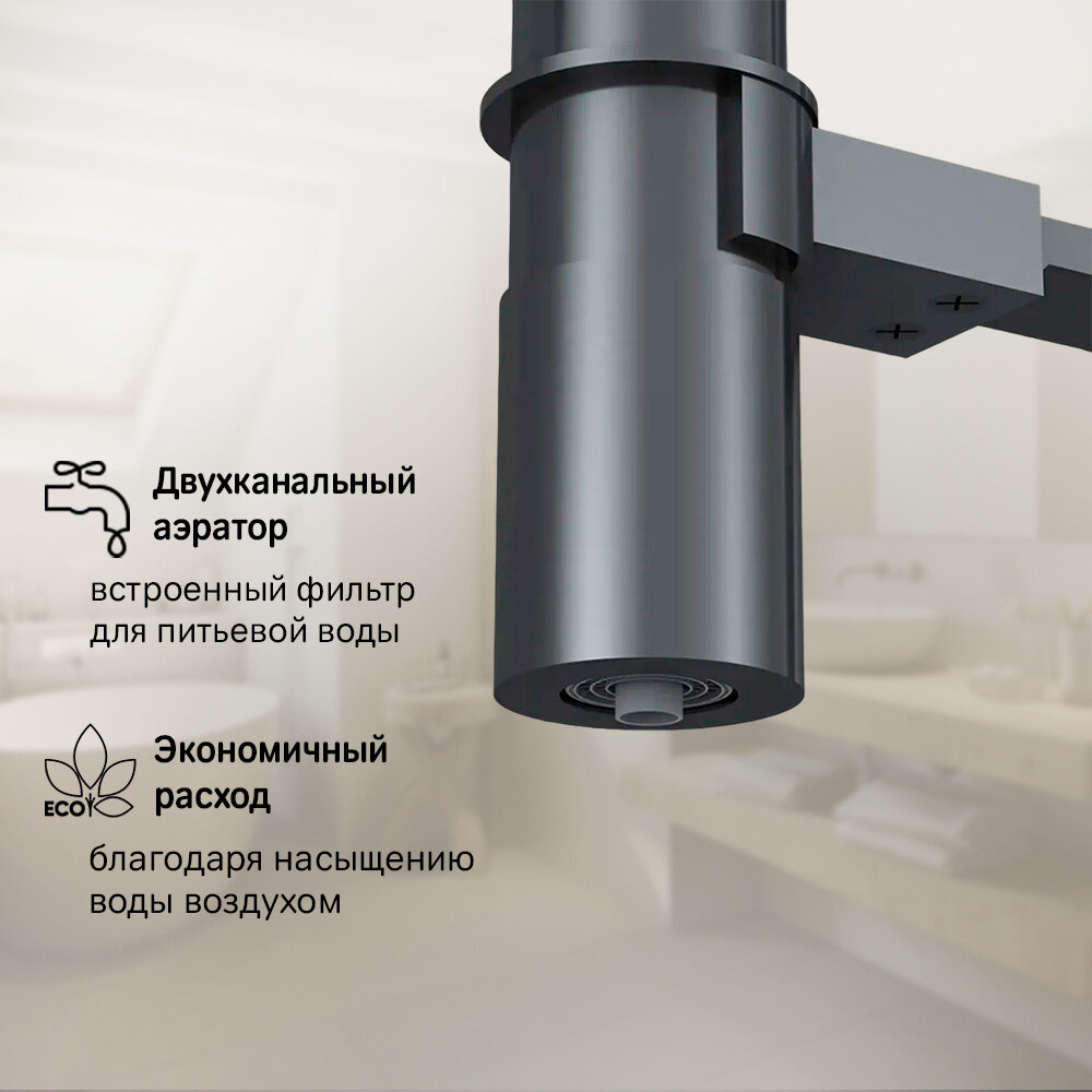 Смеситель для кухни черный с фильтром для питьевой воды AM.PM Chic, с гибким изливом, кран двойной, технология Fresh Boost 2 в 1 управление одной ручкой, Германия, высококачественная латунь, Гарантия 10 лет