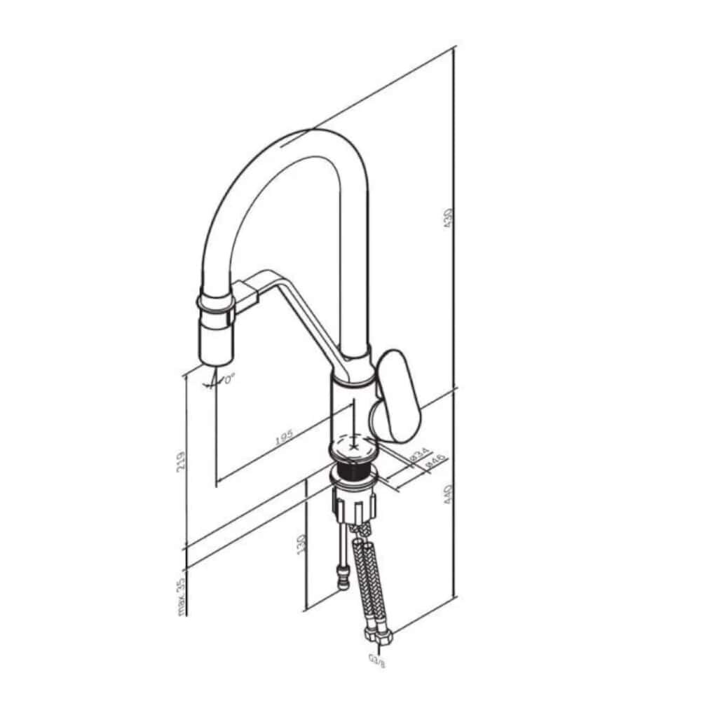| Комплектация | Смеситель для кухни, гибкая подводка, инструкция |
