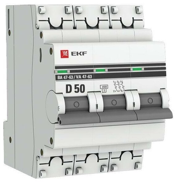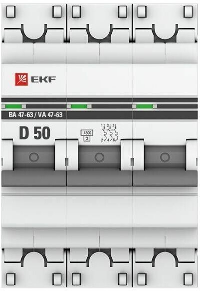 СохранитьВыключатель автоматический модульный 3п D 50А 4.5кА ВА 47-63 PROxima, EKF MCB4763-3-50D-PRO (1 шт.) интересное: