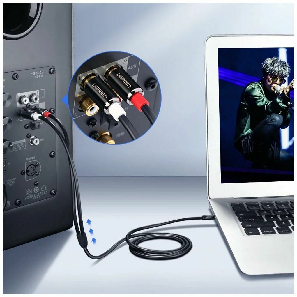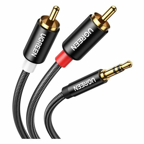 Кабель UGreen AV116 3.5 mm to 2 x RCA Audio Cable (2 метра) 10584, чёрный