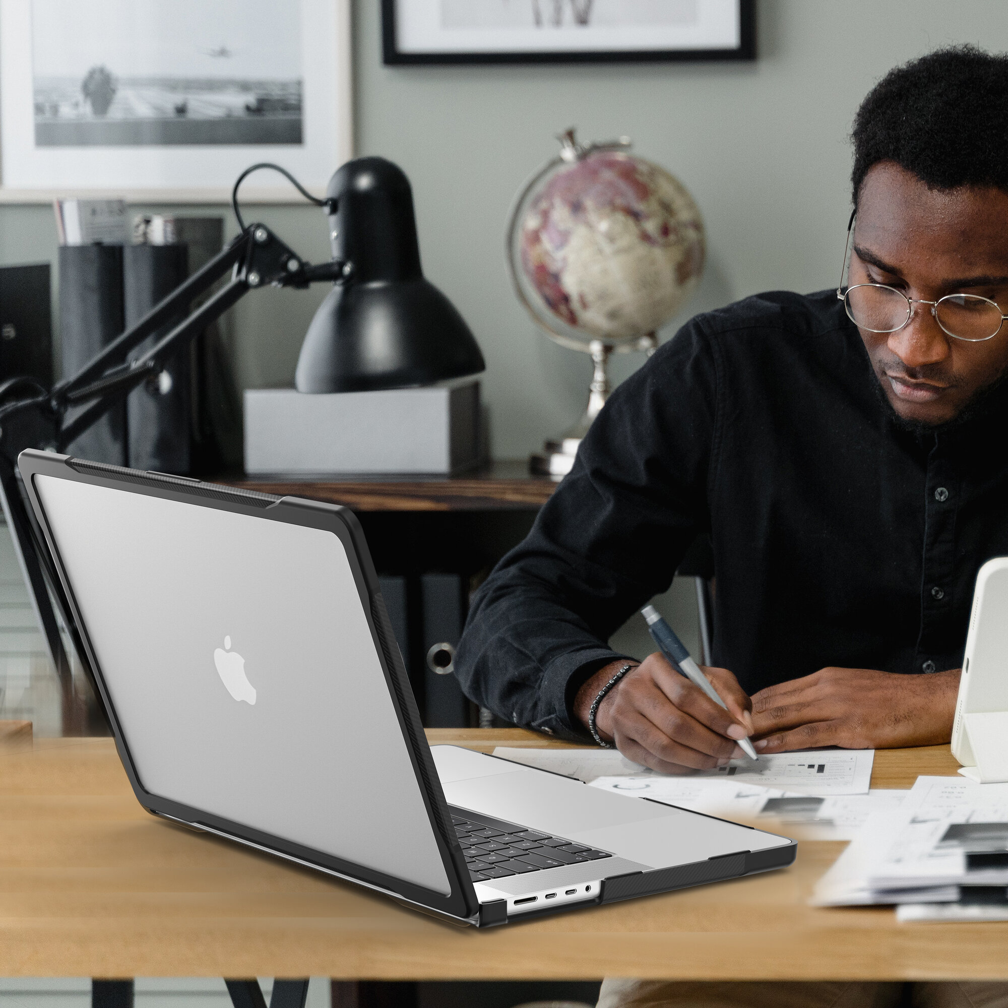 Противоударный бампер MacBook Pro 16 M1 M2 M3 M4 (A2485 A2780 A2991 A3403 A3186) c защитой углов Черный матовый
