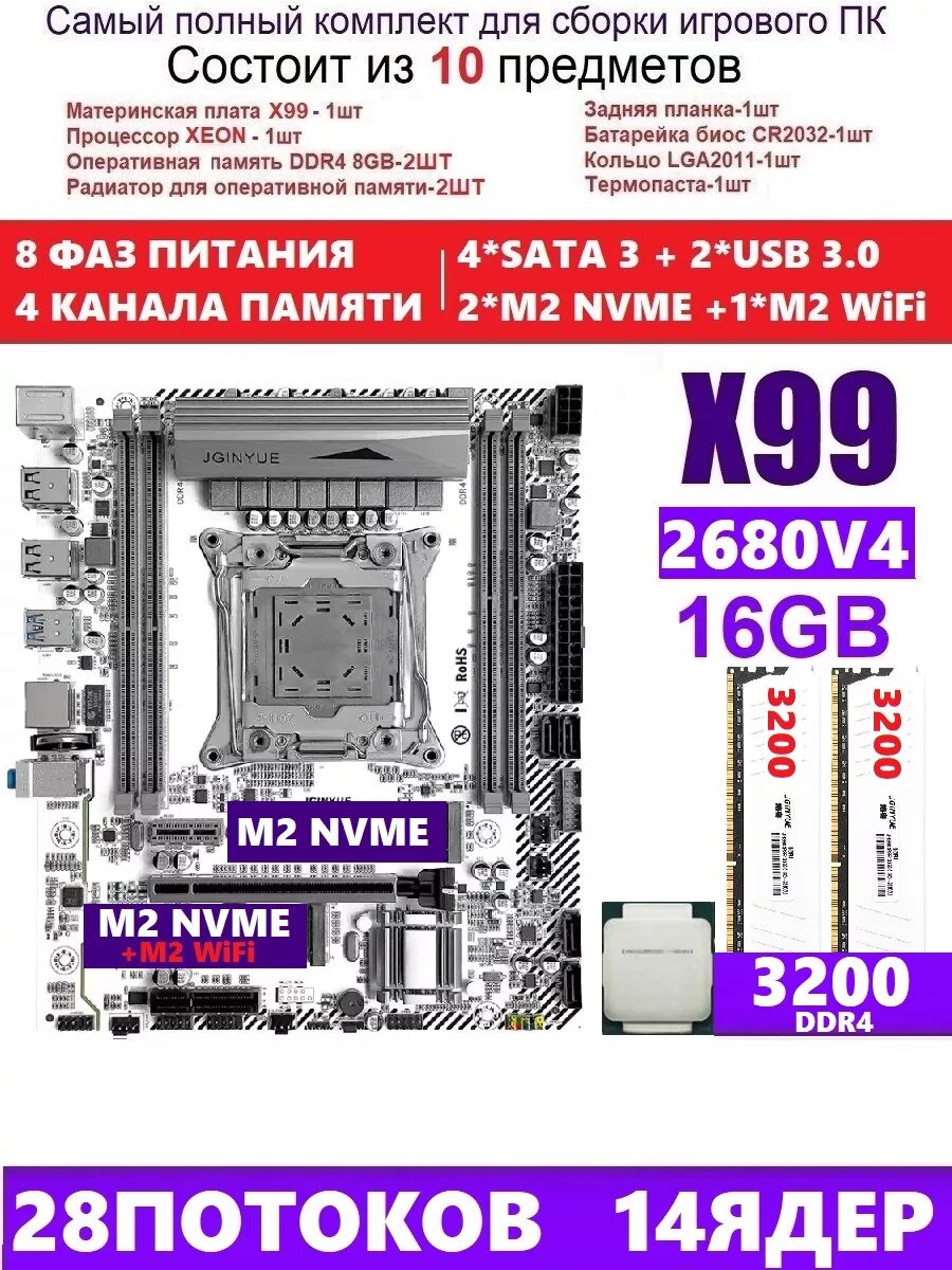 Купить XEON 2680v4 2x8G Комплект X99M gaming d4(Аналог QD4)