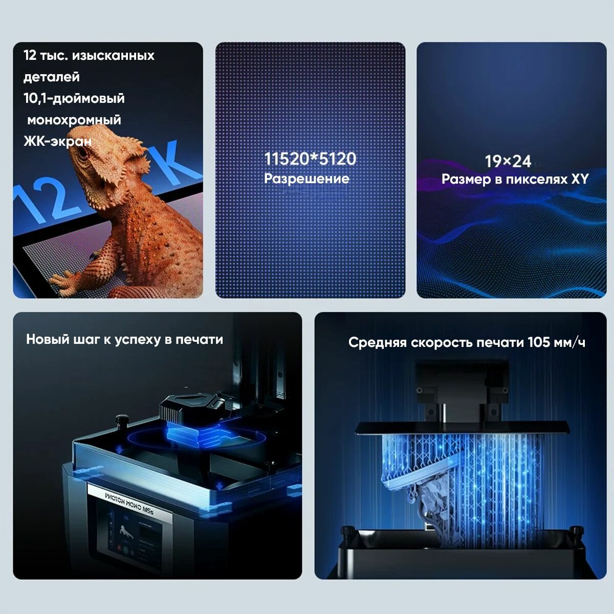 Купить 3д принтер ANYCUBIC Photon Mono M5s, 200х218х123, SLS, 1 экструдер, 300 мм/сек скорость печати
